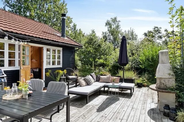 'Aage' je naša divna prostrana ljetnja kuća. Nalazi se 6 minuta hoda od zaliva za jedrenje, gdje se nalazi pristanište za kupanje ili 15 minuta hoda od Kattegata. Imamo prelijepu parcelu u prirodi sa velikim starim drvećem, udobnim kutcima i mnogo sunca. Izgrađeno 70-ih, ali potpuno ažurirano u posljednjih nekoliko godina. Tu je novija kuhinja, novija šporet na drva, a ostatak je renoviran i uređen u mješavini novog i retro. Postoje natkrivene drvene terase koje zaklanjaju sunce ili rešetke za malu tuš-kabinu.