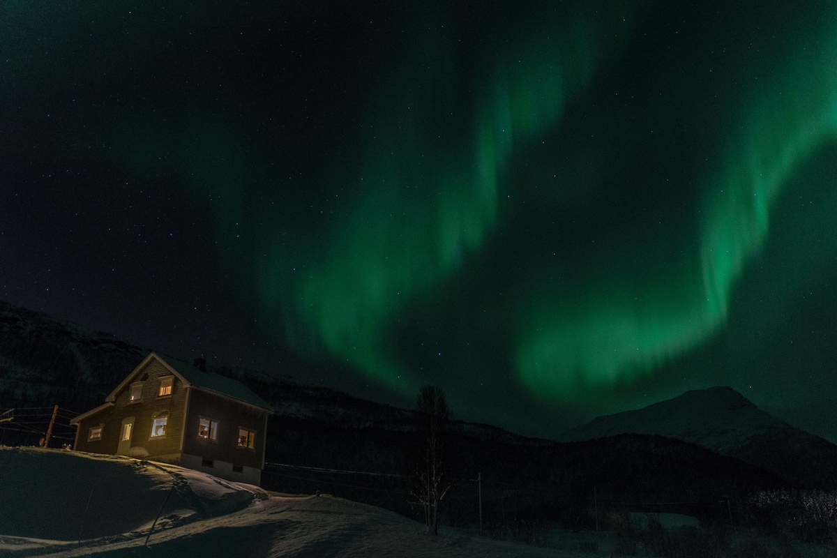 Dobro došli u Ramfjorden koji nudi prelijepu prirodu i visoke planine. Uživajte u boravku u samostojećoj kući koja ima sve što vam treba za boravak. Ovo područje je dobra lokacija za vidjeti polarnu svjetlost i arktičke životinje. Ovdje možete da pecate u fjordu koji je zaleđen 6 mjeseci godišnje, da planinarite u obližnjem području ili da se vozite do Tromsa, što traje oko 30 minuta. Imam besplatan krevetac za bebe, cipele za snijeg, sanjke, sanke, sanke, izlete u ribolov i ribolov na ledu. Takođe može da iznajmi čamac, skijanje i snoubord na zahtjev :-)
