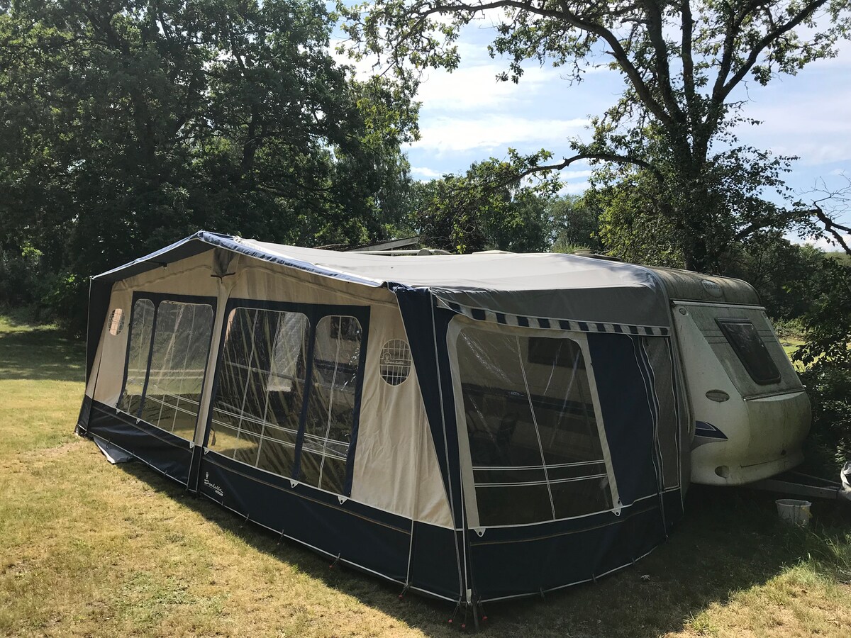 Kamp prikolice sa prostorom za sjedenje na otvorenom