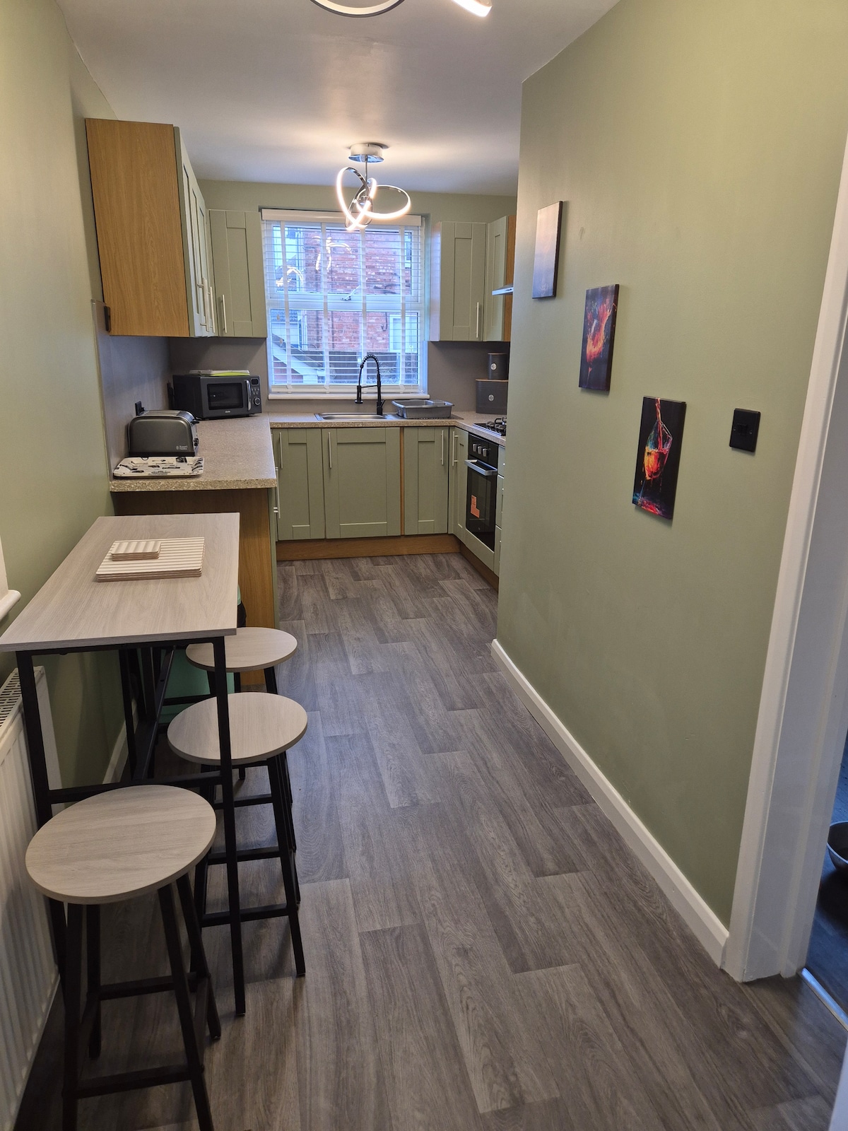 Ova divna dvosobna maisoneta na PRVOM SPRATU koja je u blizini autobuske/željezničke stanice, glavne glavne ulice, tržnog centra Hildreds, 3 supermarketa, pabova, klubova, arkada, pozorišta Ambasade, plaže/ mora, Gibraltar Pointa. Dva terena za golf, Bowls Green. Zabavni sajam, Pitch n Putt itd... Bašta (bez ograde) koja ima unutrašnje dvorište i sklopivu liniju za pranje veša. Sopstvena ulazna vrata i prilaz koji može da primi 3 automobila. Kuhinja ima duplu rernu, indukcijsku ploču, frižider/zamrzivač, toster, peglu