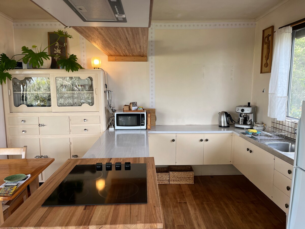 Prekrasna, mala kuća izvan mreže sa svim modernim udobnostima koje su vam potrebne. Pravi pogled na okean i prašumu koji oduzima dah nalazi se iznad duboke klisure. Ptice, divlje životinje i drevna stabla dočekaće vas kroz panoramski prozor koji gleda dalje od udobnosti luksuznog bračnog kreveta, potpuno opremljene kuhinje, udobnog dnevnog boravka sa simpatičnim kaminom i prostranog kupatila. Tuširajte se ili potopite u spoljašnje kupatilo na velikoj terasi, gledajte u Mliječni put noću, sjedite pored vatre, sve je tu da se odmorite.