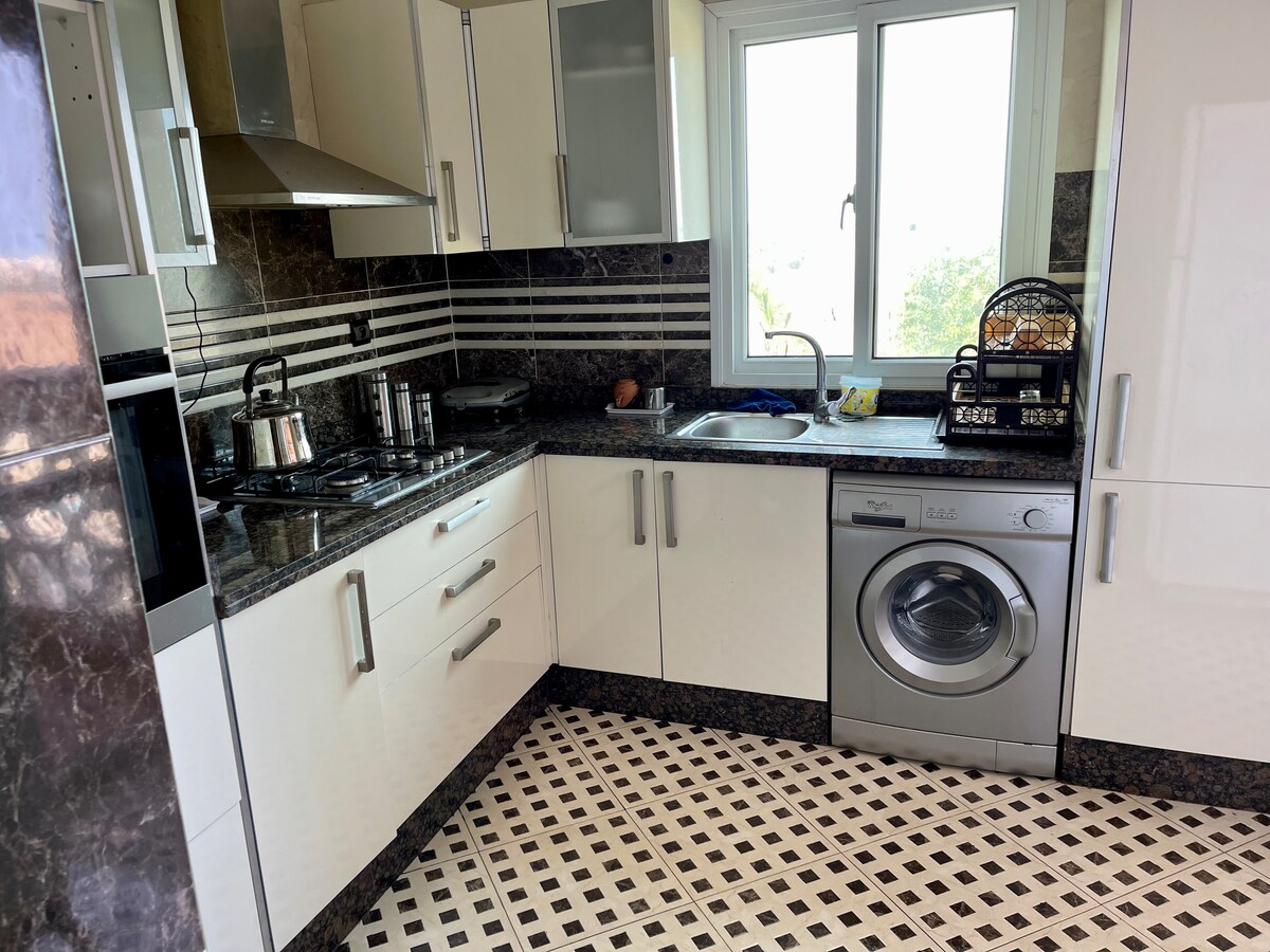 Beau Rez de jardin,,au sein du complexe balnéaire Bahia Golfe Beach ,comprenant 3 chambres,salon spacieux climatisé,2sdb,cuisine bien équipée,toute les pièces donnent sur jardin et terrasse offrant fraîcheur et ambiance chaleureuse au logement . Fibre optique.2 bicyclettes à votre disposition.parking . Une piscine disponible toute l année . Accès direct à la mer, une corniche aménagée de 3km , plage privée,hôtel Vichy,Golf club House MARJANE à proximité même des livreurs Glovo Mc Do sont dispo