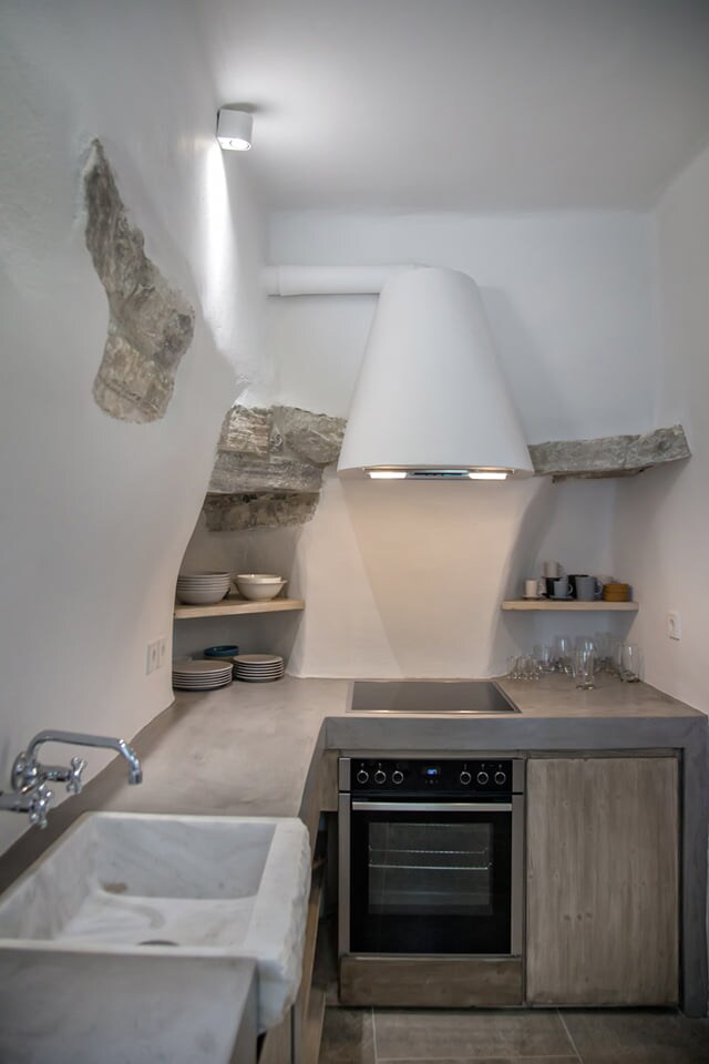 Ova ekološka kuća površine 55 kvadratnih metara nalazi se 18 minuta automobilom od luke Tinos, na zapadnoj strani ostrva, ugnežđena u masliniku i okružena stenovitim pejzažom i pogledom na Egejsko more. Ova tradicionalna seoska kuća redizajnirana je u minimalnom stilu. Prostor je idealan za parove koji vole seoski život i privatnost. Nudi priliku da se opustite od gradskog života i ponovo povežete sa jednostavnošću i spokojem prirode i svesnosti.