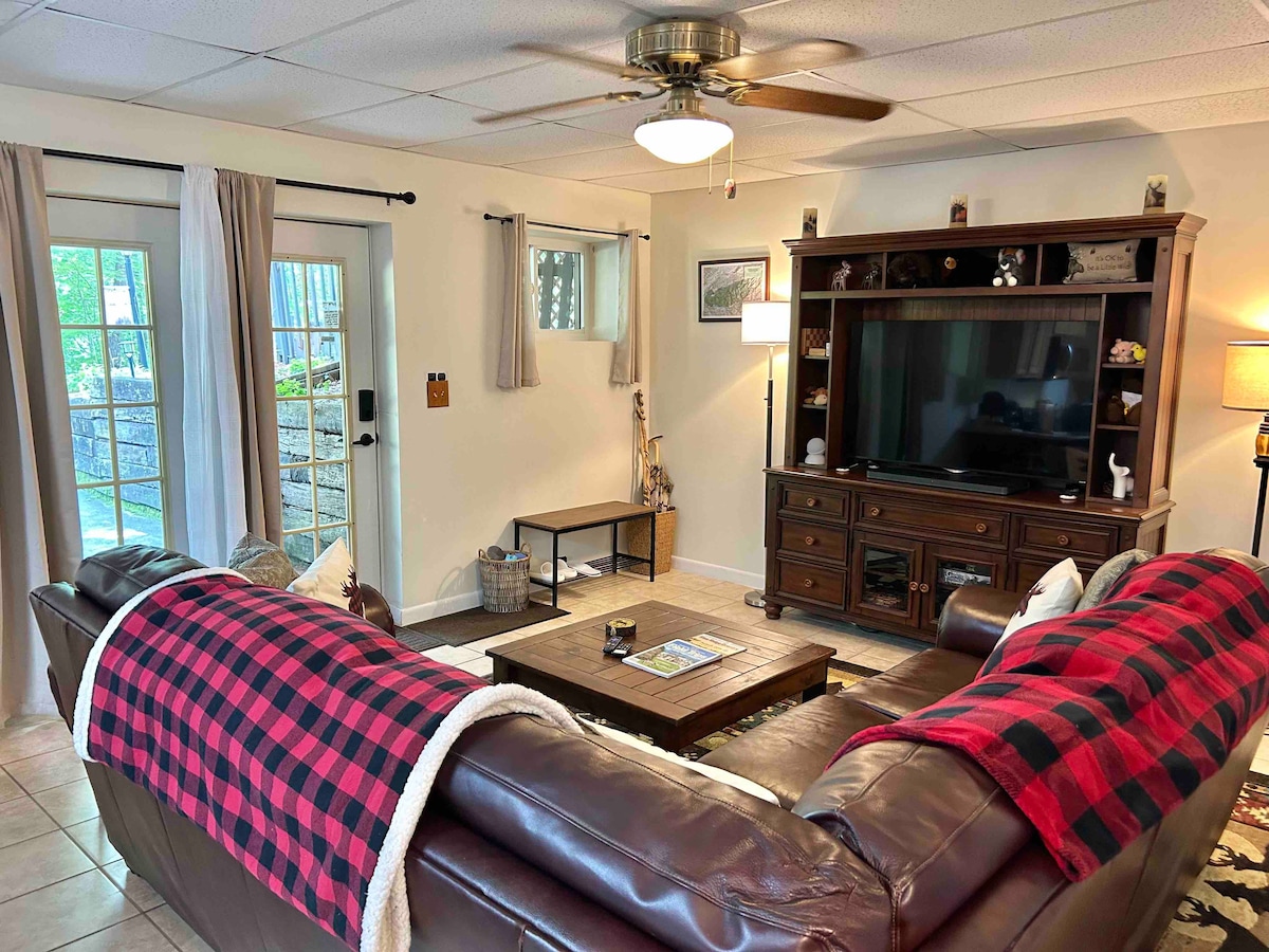 🫎Original MooseLodge Hideaway. A peaceful mountain escape with comfort, space, and unbeatable access to the best of the Smokies. Cosy, spacious garden-level apartment w charming decor. Amazing outdoor Mt. views. Fire Pit, BBq. Pet 🐾 Family friendly. Large bdrm & 2nd sleeping area w bunkbed. Oversized bathroom w/private SAUNA. LG Wash/dry. FULL kitchen. 4K Smart 55” LG tv. PREM APPs. 2 min to Townsite and GSRR train depot. 10-15 min to Great Smoky Nat park. NOC, Rafting, <20 min to Casino.