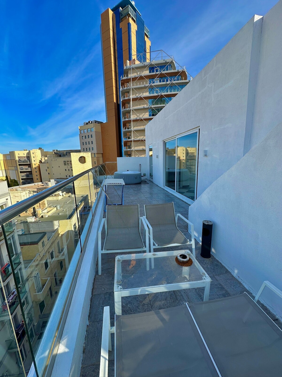 Smješten na gornjem spratu zgrade Paceville Aces, ovaj luksuzni penthaus nudi privatni đakuzi/hidromasažnu kadu i prekrasan pogled na more za nezaboravan boravak! Smješten samo nekoliko koraka od noćnog života Pejsvila, marine Portomaso, Merkjuri tornja i plaže, to je savršena mješavina uzbuđenja i opuštanja. Sa potpuno opremljenom kuhinjom i prostranom terasom, ovaj penthaus je dizajniran za vrhunsku udobnost. Ako ovo vidite, imate posebne popuste!