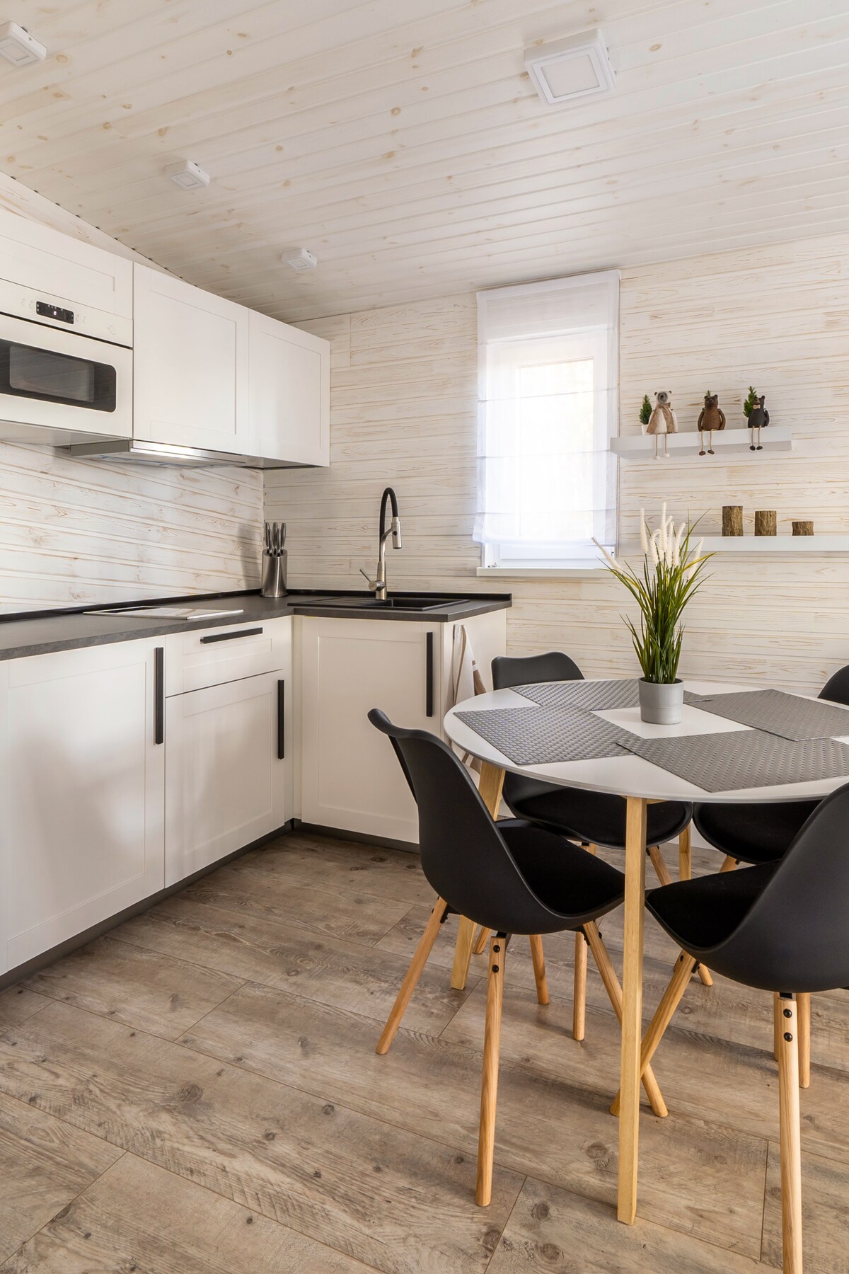 Opustite se u blizini mirnog jezera Valgums. Smješten u Nacionalnom parku Kemeri, prostor je savršen za ljubitelje prirode, nudeći prizore razigranih vjeverica i raznovrsnih vrsta ptica na samom pragu. Kuća je dizajnirana za udobnost, sa grijanim podovima i unutrašnjim kaminom za udobnost tokom cijele godine. Potpuno opremljena kuhinja olakšava pripremu obroka, a dan možete da započnete sa savršenom šoljicom kafe.