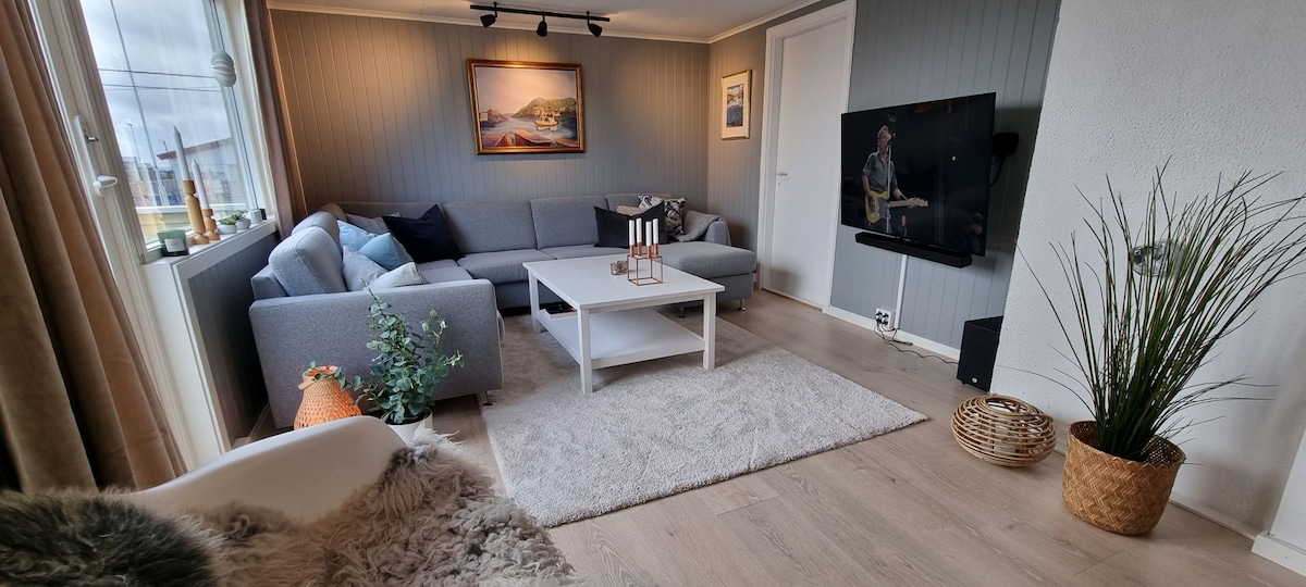 Opustite se sa celom porodicom ili prijateljima u ovom mirnom mestu za boravak. Kuća ima 3 spavaće sobe sa ukupno 8 kreveta, odličnu novu, dobro opremljenu kuhinju i dva dnevna boravka. Kuća je centralno smeštena na Veiholmenu, u blizini ostrva na otvorenom, gde imate pristup prodavnicama, restoranima, kafićima i šarmantnim starim počecima. Kuća ima sve sadržaje sa TV-om, brzim Wi-Fi mrežom, mašinom za pranje veša i električnim punjačem za automobil. Nema na čemu! Alf Håvard i Marthe