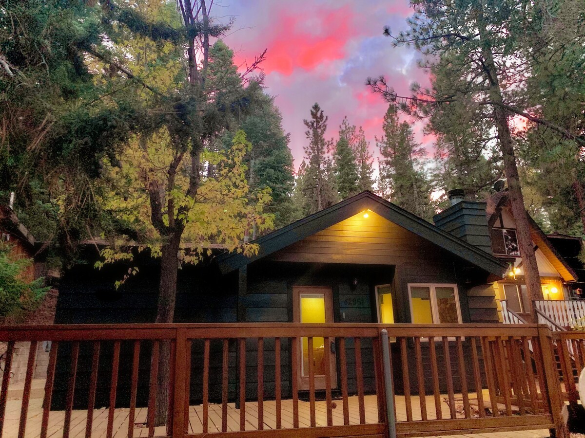 Pobjegnite u našu planinsku kolibu u poželjnoj četvrti Lower Moonridge koja je udaljena 5 minuta hoda do besplatnog Big Bear Trolley (Red Line) do Bear Mountain ili Snow Summit, koji traje svakih 30 minuta. Obezbjeđujemo svježe bijele peškire, što je rijedak luksuz na Airbnb-u! Uživajte u velikoj, izolovanoj terasi s ognjištem i roštiljem. Čeka vas zimska čudesna zemlja sa toplim kaminom na drva, modernom kuhinjom i mekim udobnim krevetima kako bi ovo bilo savršeno utočište. Rezervišite odmah za nezaboravan odmor!