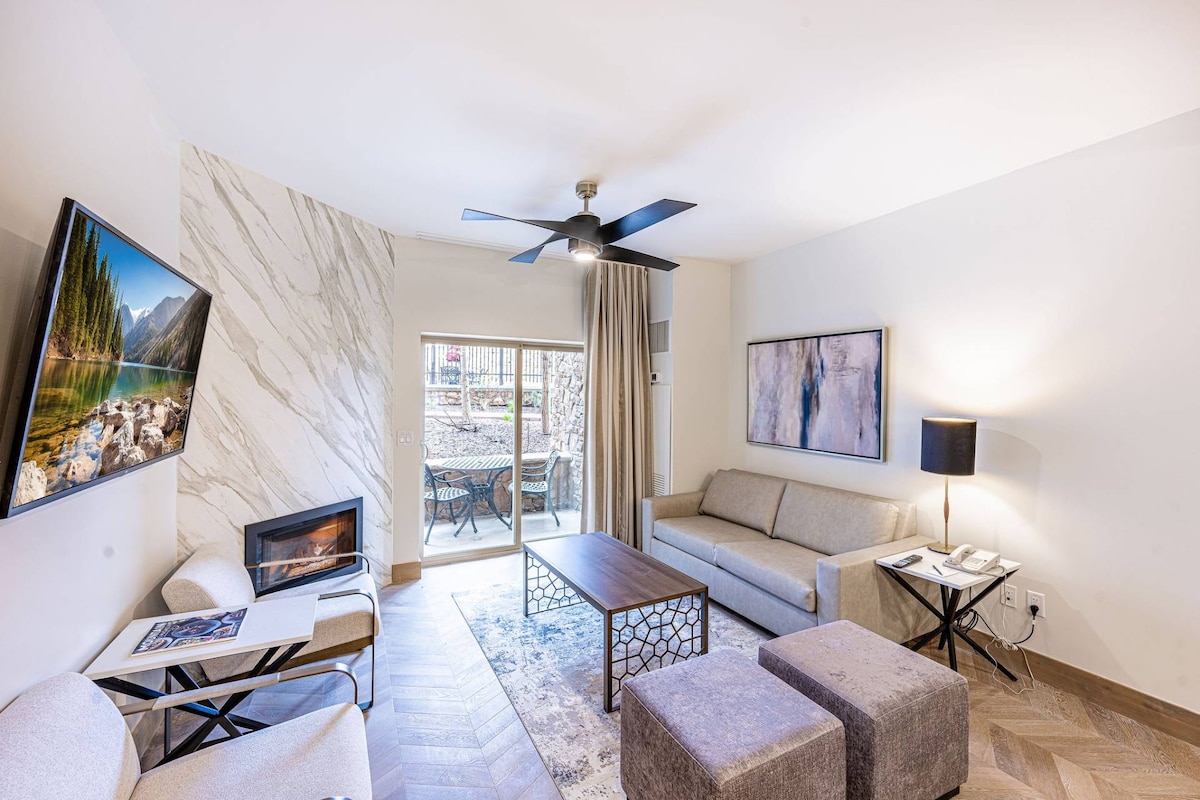 Ovaj stan se nalazi u srcu sela Solitude. Imaćete pristup prostranom bazenu, hidromasažnim kadama, sauni i još mnogo toga! Iako nudi samo jednu spavaću sobu, susjedna jazbina nudi raspored spavanja s bračnim krevetom i bračnim krevetom, što prostor čini savršenim za smještaj do 5 osoba. Uz pješačenje, biciklizam, skijanje svjetske klase, spa i restorane udaljene samo nekoliko koraka, vaš boravak obećava zabavu tokom cijele godine. Posvećeni smo tome da vaš odmor bude izuzetan u svakom pogledu.