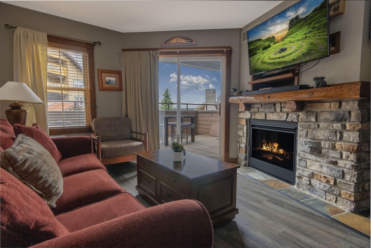 Potpuno renoviran novembar 2022. 1 spavaća soba u privatnom vlasništvu Deluxe na gornjem spratu, jedinica Village Center s pogledom na selo i privatnim trijemom. Rimfire se nalazi u srcu Snowshoe Villagea. Prošetajte do svih prodavnica i restorana. Pristup ormariću za skijašku opremu 461, hidromasažnim kadama na otvorenom, sauni, fitnesu, ognjištu sa unutrašnjim i spoljašnjim prostorom za sjedenje i opcioni podzemni grijani parking za 20 $ bez pogodnosti ulaska i izlaska. Besplatan parking je dostupan preko puta.