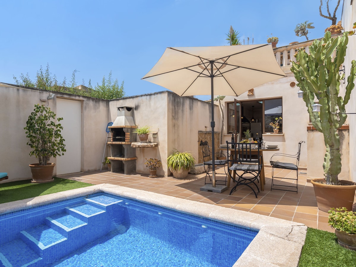 Okružena baštom, kuća je okrenuta prema velikom bazenu u mirnom okruženju s pogledom na Sijera de Tramuntana. Do centra grada možete doći pešice. Kuća ima ogroman prostor koji uključuje modernu kuhinju potpuno opremljenu, trpezariju sa dugim stolom i udoban dnevni boravak sa dimnjakom. Do 8 ljudi može udobno da boravi u kući koja ima 4 spavaće sobe, 3 kupatila i toalet. Takođe je veoma dobro opremljen (klima, grejanje,…).