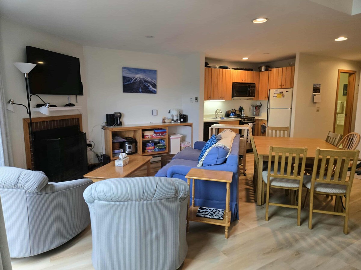 Stan na drugom spratu Sugarloaf Mountain! Glavna spavaća soba sa bračnim krevetom; spavaća soba u potkrovlju na gornjem spratu može da spava do 4 u 1 dva kreveta na sprat + 2 blizanca; 2 kupatila; gasni kamin; vešeraj; granitne kuhinjske radne površine; i privatni balkon. Izuzetno praktična šetnja od 1 min do žičare Snubber, 30 sekundi hoda do stanice za prevoz i jednostavan pristup stazi Sugarloaf Outdoor Center. Cjelogodišnje aktivnosti: alpsko skijanje, skijanje na trčanju, skijanje na snegu, debeli biciklizam, brdski biciklizam, golf, planinarenje i još mnogo toga!
