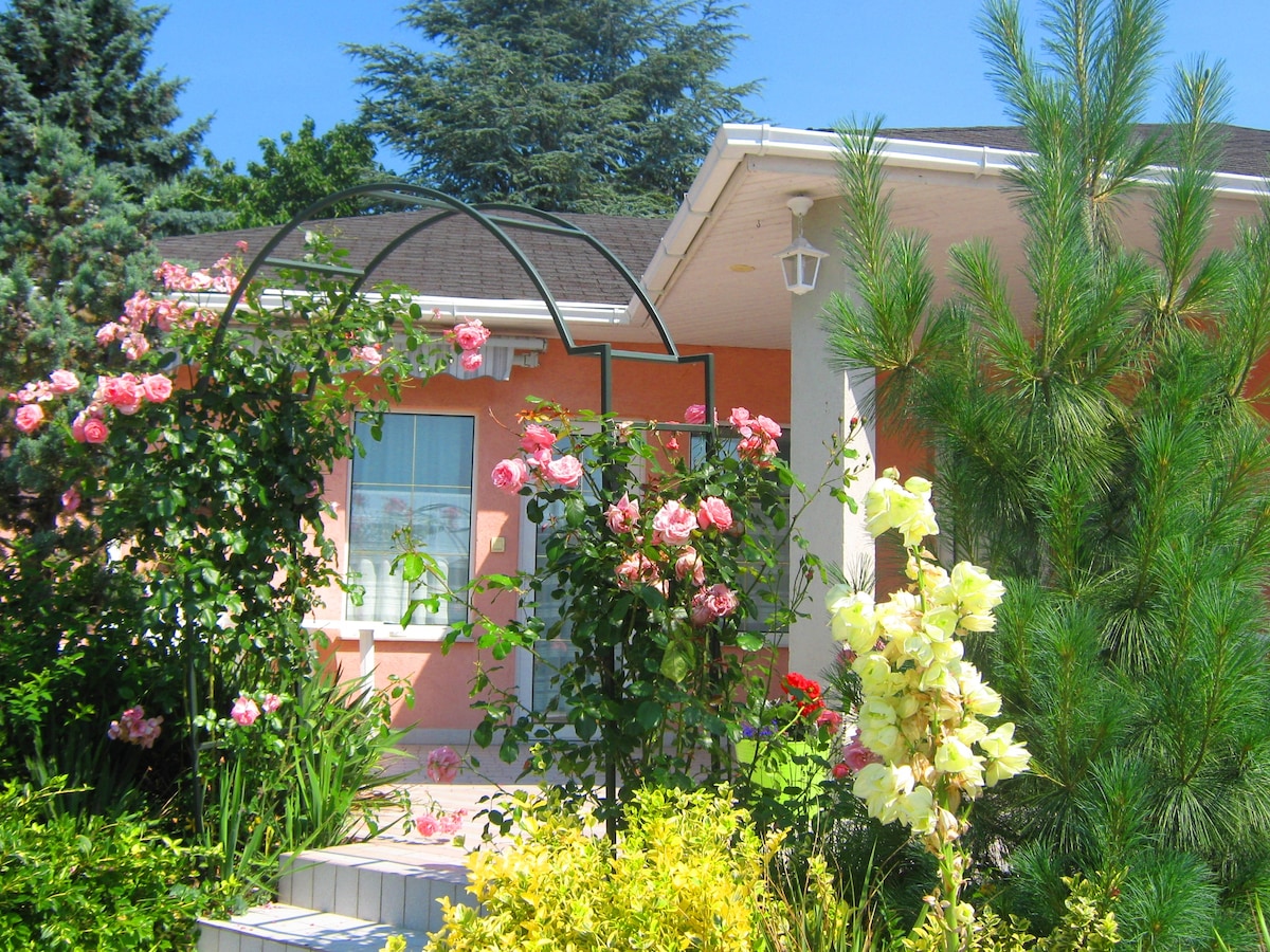 Nalazi se u srcu područja za odmor, samo NEKOLIKO MINUTA HODA od centra grada, plaža, restorana, zabavnih sadržaja, željezničke/autobuske stanice. S pogledom na stan u bašti s ogromnim prozorima. Kao da ste se probudili u velikoj, zelenoj bašti. TERETANA NA OTVORENOM u bašti. KLIMA-UREĐAJ. BESPLATAN PARKING na ulici. Savršen smještaj za nezaboravan odmor s prijateljima ili porodicom ili za romantično putovanje s partnerom.