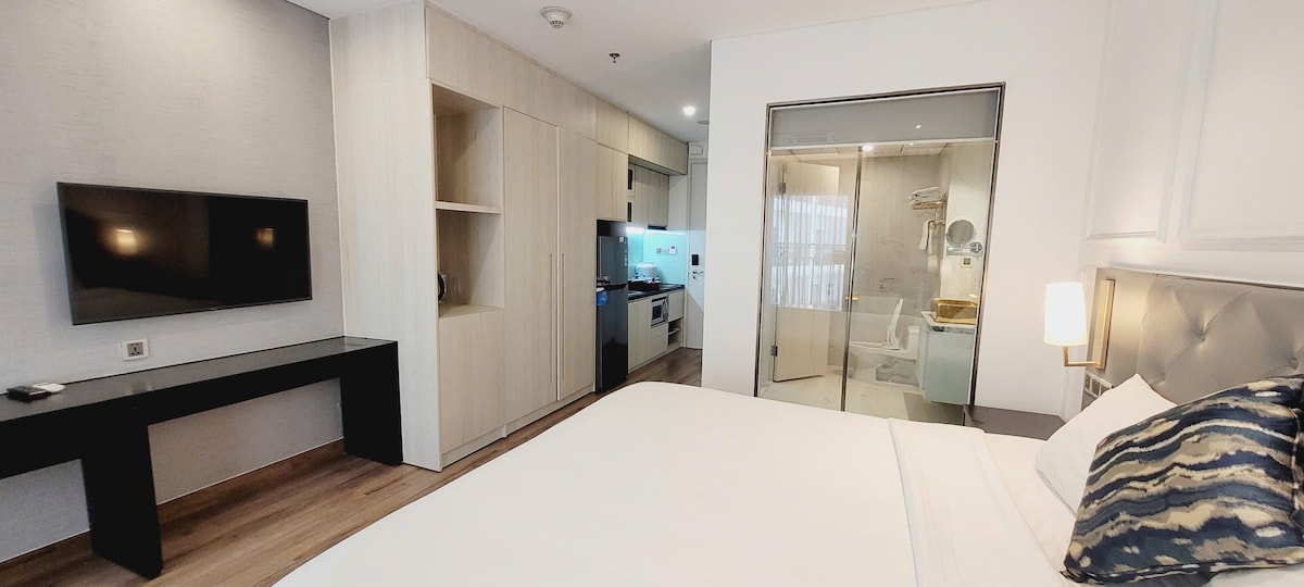 - Các phòng được chăm sóc chu đáo, tỉ mỉ và sạch sẽ luôn là những lợi thế. •Đây là căn phòng nằm trong khách sạn 5 sao nhưng được vận hành bởi chủ sở hữu riêng , giá rẻ hơn 1/3 của khách sạn •Hệ thống an ninh, bảo vệ thay ca liên tục, luôn mở cửa 24/7, cho nên bạn có thể nhận phòng xuyên đêm, không có giờ giới nghiêm cho ban đêm (điều này bị hạn chế ở các toà nhà nhỏ )