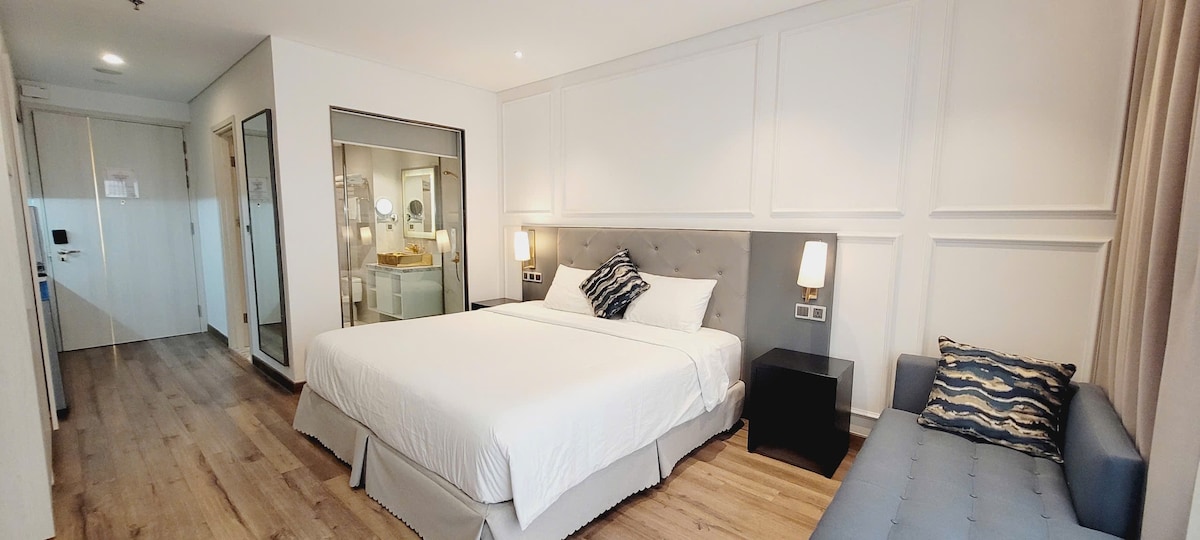 - Các phòng được chăm sóc chu đáo, tỉ mỉ và sạch sẽ luôn là những lợi thế. •Đây là căn phòng nằm trong khách sạn 5 sao nhưng được vận hành bởi chủ sở hữu riêng , giá rẻ hơn 1/3 của khách sạn •Hệ thống an ninh, bảo vệ thay ca liên tục, luôn mở cửa 24/7, cho nên bạn có thể nhận phòng xuyên đêm, không có giờ giới nghiêm cho ban đêm (điều này bị hạn chế ở các toà nhà nhỏ )