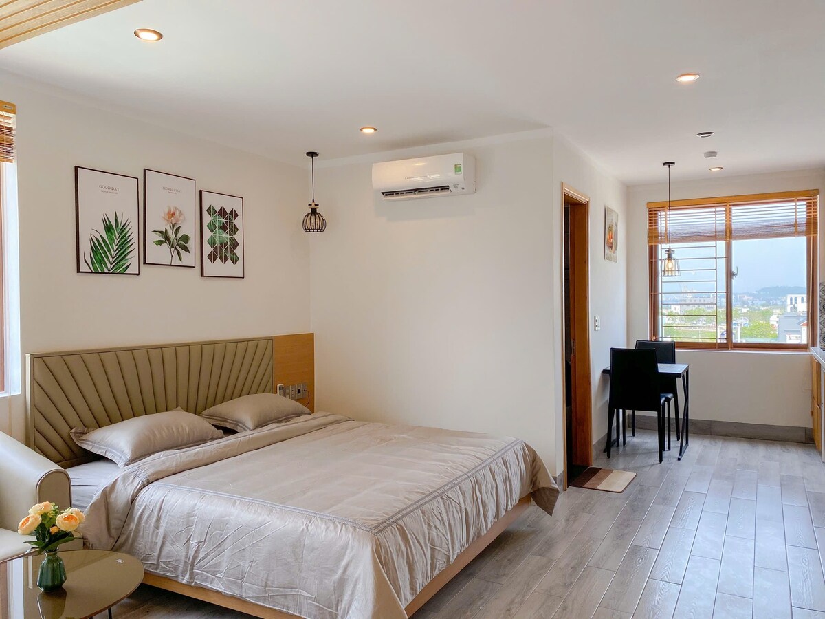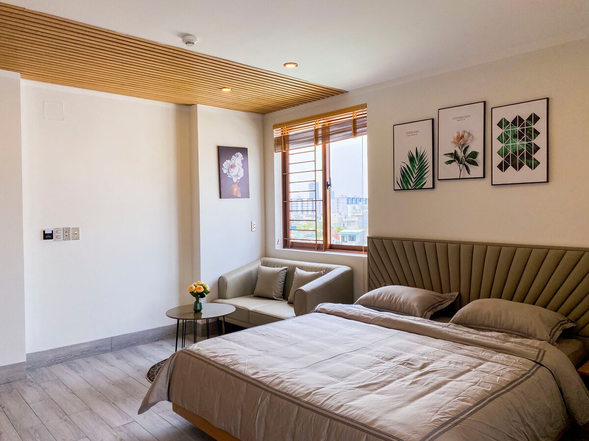 Moderan i elegantan, Altara Suites je luksuzni stan u Da Nangu koji predivno uklapa savremene enterijere sa slikovitim okruženjem. Postmoderni dizajn Salvadora Pereza Aroja. - Najbolja lokacija u Da Nangu. - 1 min hoda do plaže My Khe. - 100 m2 , udobnost za vašu porodicu. - Besplatan prelijepi bazen. - Potpuno opremljena kuhinja. - Spavaća soba i WC sa 5 zvjezdica. - Kraljevski krevet. - Klima-uređaj u svakom prostoru. - Samostalna prijava. - Prtljag možete besplatno da odložite - Besplatan marš za pranje veša i suvi maršin.
