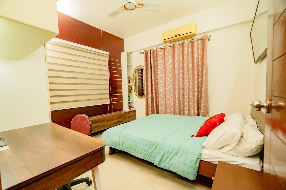 Ovaj udoban smještaj na 4. spratu kombinuje udobnost i praktičnost sa svijetlom spavaćom sobom, zidnim ormarićem, prostorom za sjedenje sa TV-om, molitvenom sobom, radnom stanicom i trpezarijom. Kuhinja ima frižider, rernu i VISOKOTEHNOLOŠKI filter za vodu za jednostavan život. Osnovna oprema kao što su gejzir, Wi-Fi i klima-uređaj u spavaćoj sobi i dnevnom boravku osigurava udobnost. Smješten pored utičnice Gulshan Aarong i pješke do prodavnica hrane, savršen je za tiho čitanje, rad od kuće ili jednostavno opuštanje za najviše 2 osobe.