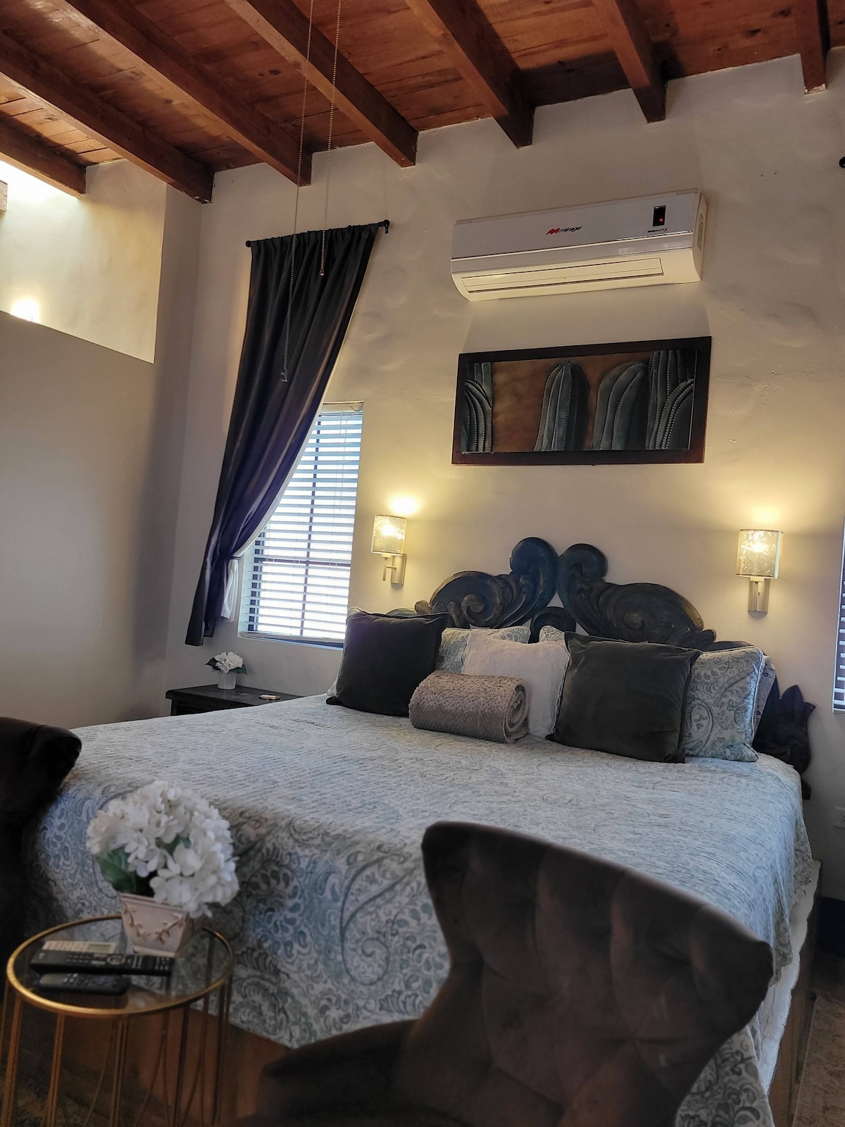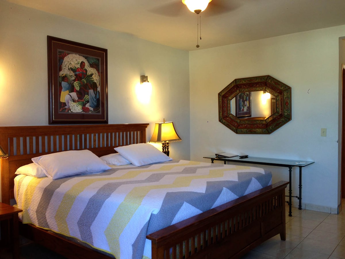 Stay in our private confortable master bedroom. King size bed, spacious shower, private toilet, vanity and closet all for you to enjoy a peaceful stay in Casa Magdalena. You will enjoy seating areas around our pristine pool, palapa bar and grill to barbeque. All of these amenities will be shared with guest of other two bedrooms. Every morning of your stay you will enjoy Complimentary Continental Breakfast.