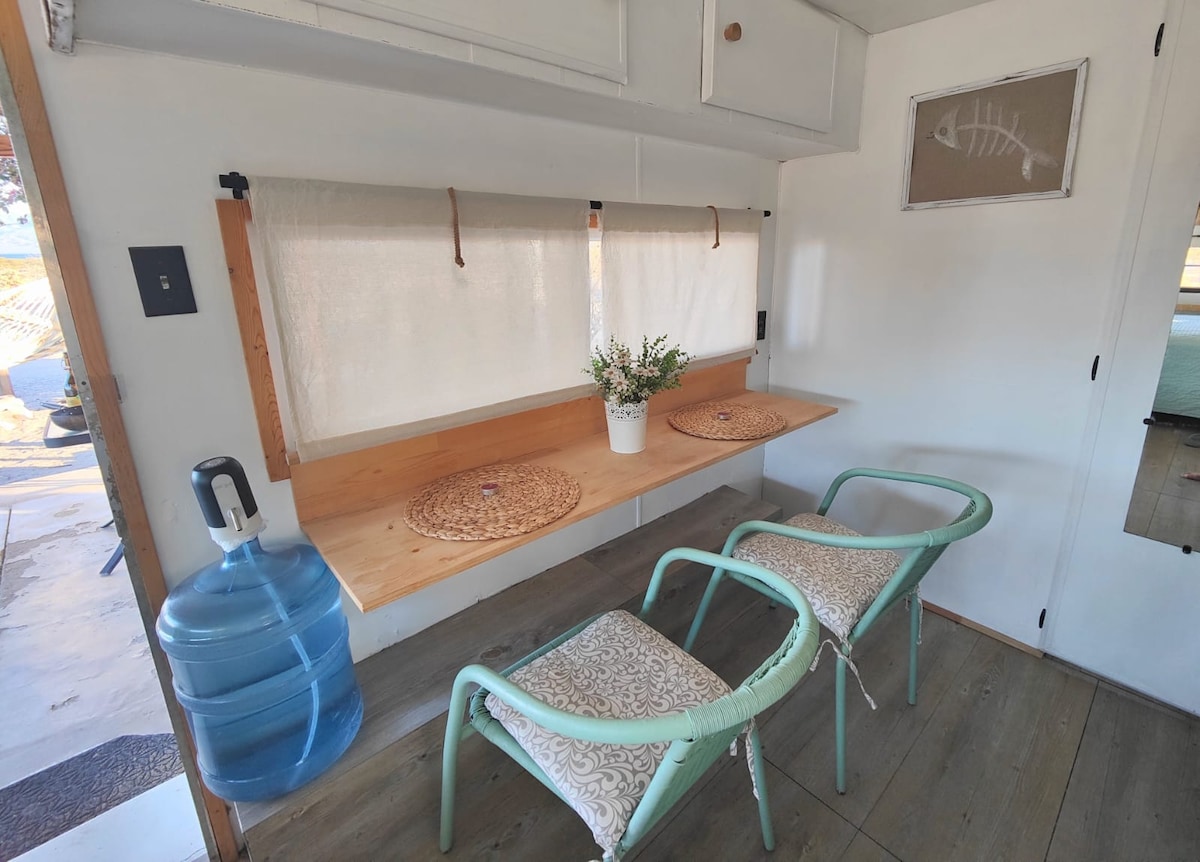 Camping Rv rental experience. A Naturalistic experience beach side, beautiful sunsets and the convenience of being on a beach side location. Some of the amenities are; a 1 queen been, 1 futon bed, dinning table, stove, refrigerator, microwave, AC , shower tub, toilet . Rv comes with blankets, toilet paper and soap. Rv park fee spot is not included. Please inquire about more than 1 night stay. Shades,chairs, tables, paddle boards, for rent. We have more Rvs . Rocky point fun rv rental.