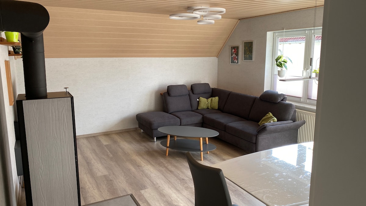 Stan sa šporetom na drva u srcu vinske regije Flein - Potpuno opremljena kuhinja - Dnevni boravak sa dodatnim kaučem na razvlačenje za treću osobu - Uključena je sveža posteljina i peškiri - Parking mjesto ispred kuće. Idealno za parove, male porodice ili poslovne putnike. Lokacija: Savršeno za planinarenje, vožnju biciklom i opuštanje. Heilbronn je udaljen samo 10 minuta vožnje automobilom. Autobuska stanica je udaljena oko 3 minuta hoda. Supermarket, pekara i restorani su u neposrednoj blizini.