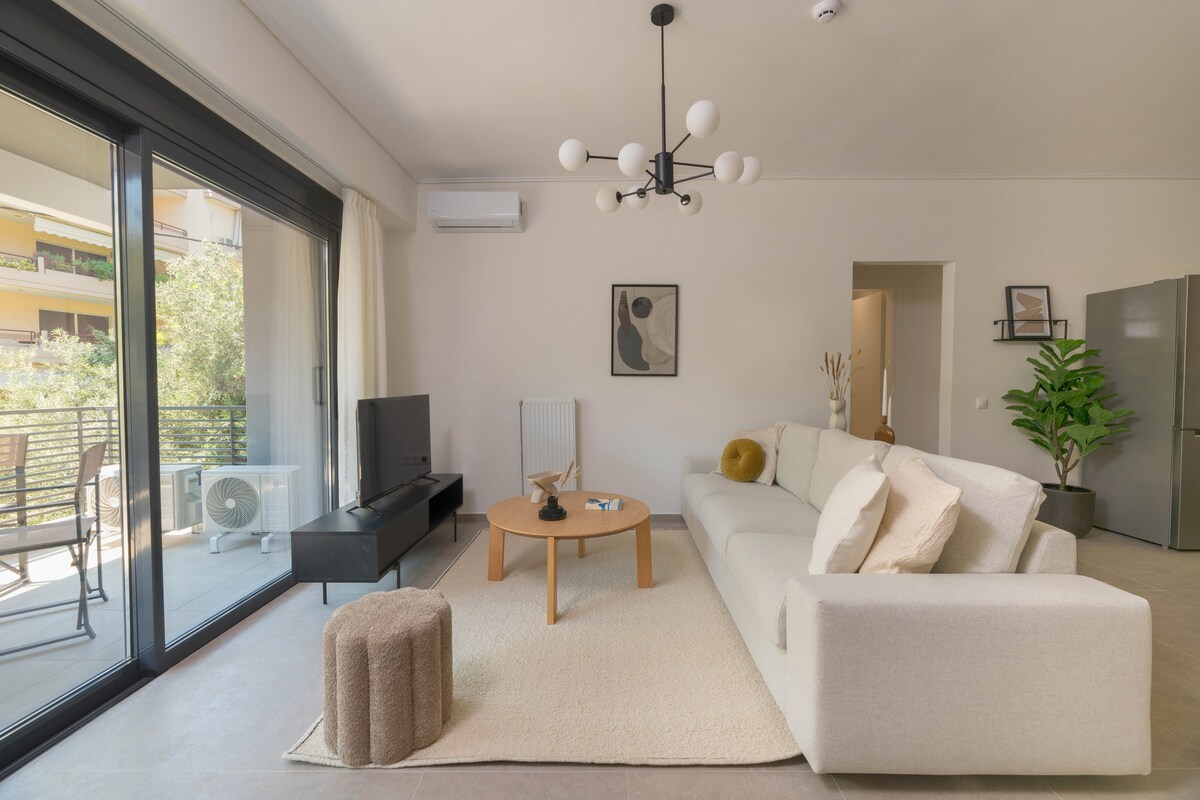 Uzdignuto prizemlje, zaseban ulaz , nadgleda baštu, mirna četvrt, jednostavan parking. Dizajnirao ga je dizajner enterijera, tako da je sve ergonamski tačno. U neposrednoj blizini se nalazi ogroman park za opuštanje. Mini pijaca i pekara udaljeni su 5 minuta. Vrlo blizu ulaza u Atiki odos. Sve je novo, a stan je u potpunosti renoviran 2020. godine. Mreže na prozorima na svim prozorima. Ima mnogo svjetla i dovoljno protoka vazduha ako želite. Bolje je da mi pošaljete poruku prije nego što rezervišete :)