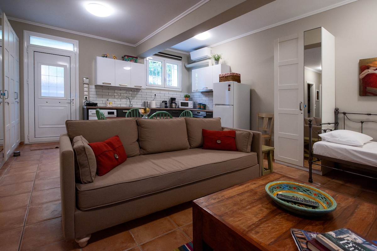 Predivan i intiman studio u Halandriju. Nalazi se u blizini glavnih bolnica i samo 10 minuta hoda do centra Halandrija. Opustite se u svom privatnom dvorištu u bašti, okruženom zelenilom i prirodnim svjetlom. Ovo malo, ali udobno utočište je ispunjeno jedinstvenim umetničkim detaljima, kao što je starinski motocikl koji se pretvara u lampu. Uživajte u savršenom spoju između praktičnosti i mira.
