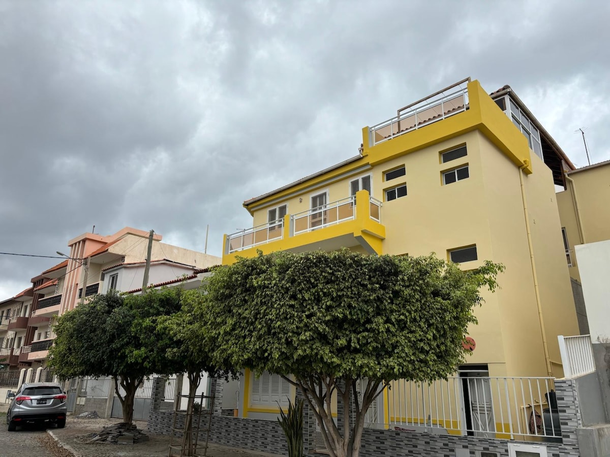 ✨ Dobro došli u svoj luksuzni smještaj u Palmarejo Baixo Uživajte u modernoj udobnosti u ovom luksuznom stanu sa 3 spavaće sobe u Okeanici — savršeno smještenom u blizini plaže, prodavnice Praia Shopping i najboljih restorana na Zelenortskim ostrvima. Ovaj prvi sprat nudi veliki balkon dostupan iz svake sobe, pogled na more, bezbjednost non-stop i privatni parking. Savršeno za porodice, profesionalce i dugoročne goste. ❄ Klima-uređaj u svim sobama 🌊 Veliki balkon (pogled na more) 🚗 Garaža 🦽 Pristup bez stepenika 🛎️ Čuvar