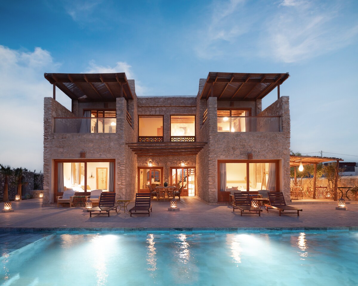 Izgrađena od tradicionalnih lokalnih materijala, vila prikazuje Beldi Chic dizajn koji odjekuje bogatom izradom Maroka. S pogledom na okean i smještena u prirodi samo 25 minuta od Esauire, vila ima 4 spavaće sobe sa zasebnim kupatilima, hotelskom posteljinom i pristupom bašti od 2200 m². Gosti mogu da dođu do peščane plaže kratkom šetnjom kroz dine. Na solarni pogon i ekološki osviješten, savršeno je mjesto za opuštanje. Preporučuje se automobil za namirnice i lakši pristup.