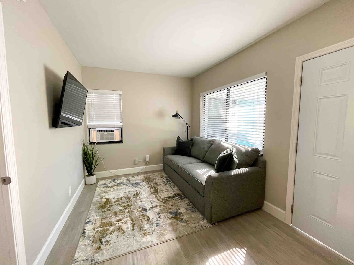 Dobro došli u naš potpuno renovirani studio apartman! Ovo je savršeno mesto za opuštajući i praktičan boravak u sunčanom okrugu Palm Bič. Uživajte u kupatilu sa tuš kabinom HydroJet i potpuno opremljenoj kuhinji sa svime što vam je potrebno da se osećate kao kod kuće. Jednostavan pristup svim atrakcijama u okolini. U roku od nekoliko minuta možete da stignete do aerodroma, plaže, restorana, supermarketa, parkova i glavnih autoputeva I-95 i FL Turnpikea. Nudimo vrijeme prijave u 13:00, bračni krevet, 1 parking