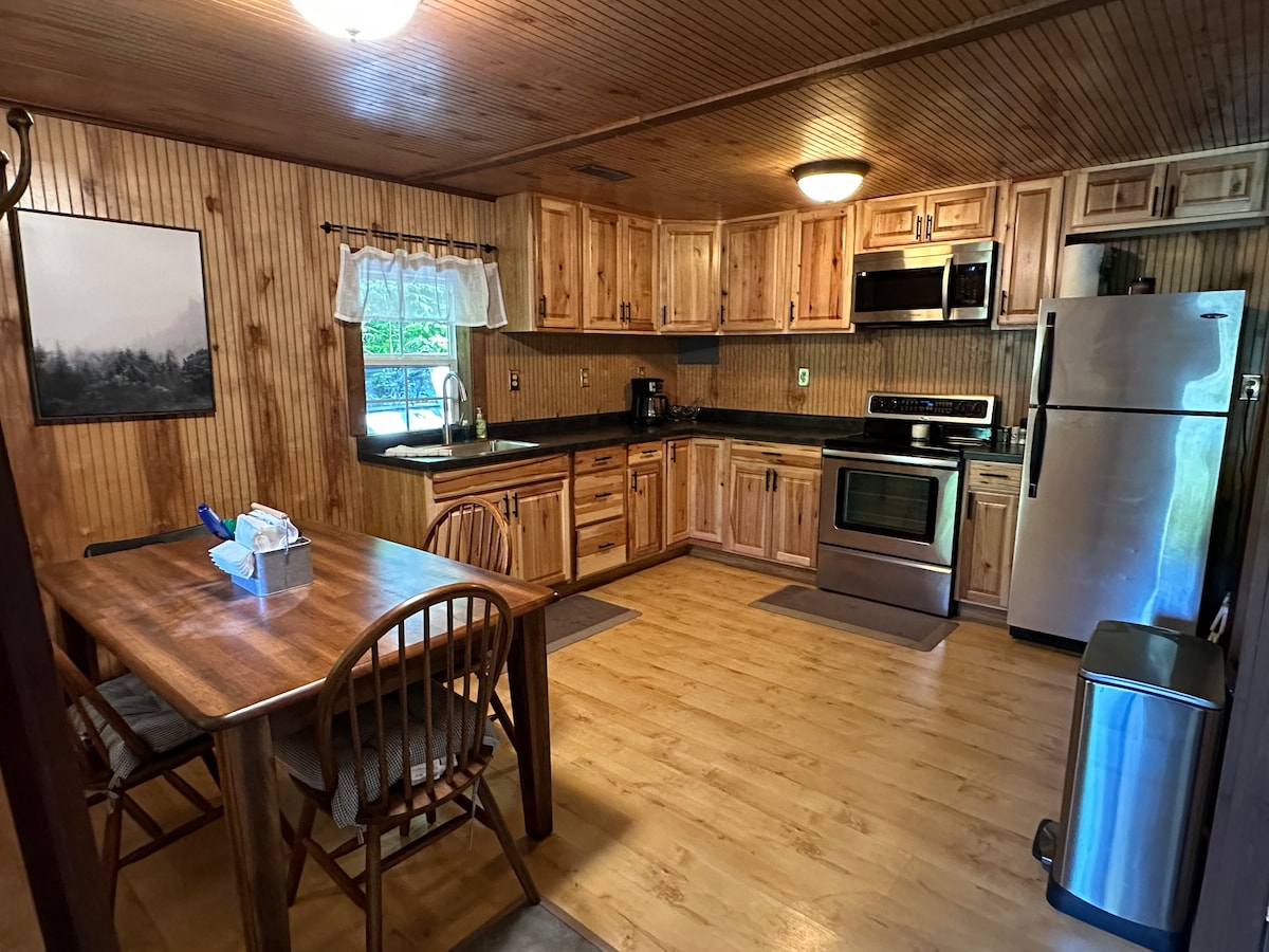 Stvorite uspomene u ovom jedinstvenom smještaju prikladnom za porodice. Doživite minijaturnu kuću koja živi u našoj maloj brvnari. Uživajte u prelepom jezeru Rocky Fork, selu Amiša, pešačite i istražite Arc of Appalachia. Iznajmljivanje brodova je odmah niz put u Bayside Bait and. Naša brvnara ima 2 kreveta pune veličine na spratu u potkrovlju, kao i udoban bračni krevet koji takođe čini pristojan krevet. Postoji mali sto i stolice. Tu je i veći frižider na natkrivenom zadnjem trijemu.
