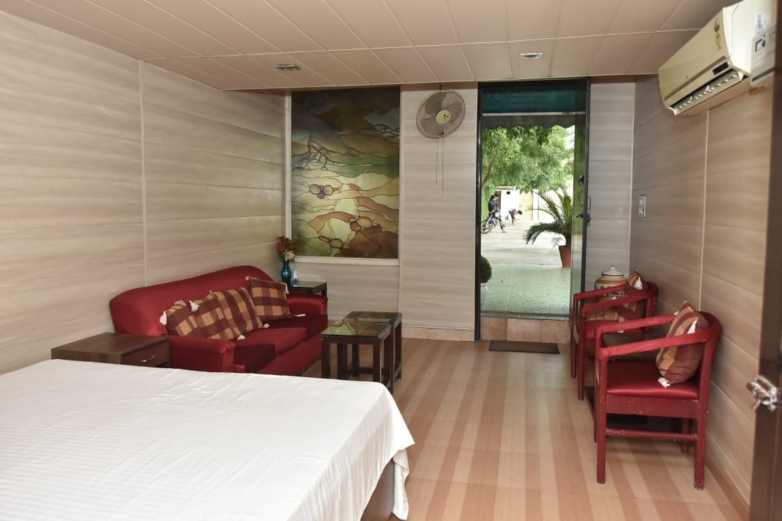 Novoizgrađene drvene kućice sa BAZENOM (od marta do oktobra uz doplatu), lična garsonjera sa baštom i otvorenim do nebeske palube. Prekrasni zeleni travnjaci, organska polja, voćnjak manga i voćke. Sva glavna mesta sa turističkim atrakcijama su unutar KSNUMKSmin vožnje i blizu metro stanice "Chhatarpur". Udoban boravak u potpunosti opremljen čajnom kuhinjom, bezbjedno 24 sata dnevno. Ako tražite privatni luksuz, pronašli ste ga . Dođite, opustite se, opustite i uživajte u luksuzu. Otkrijte sebe.