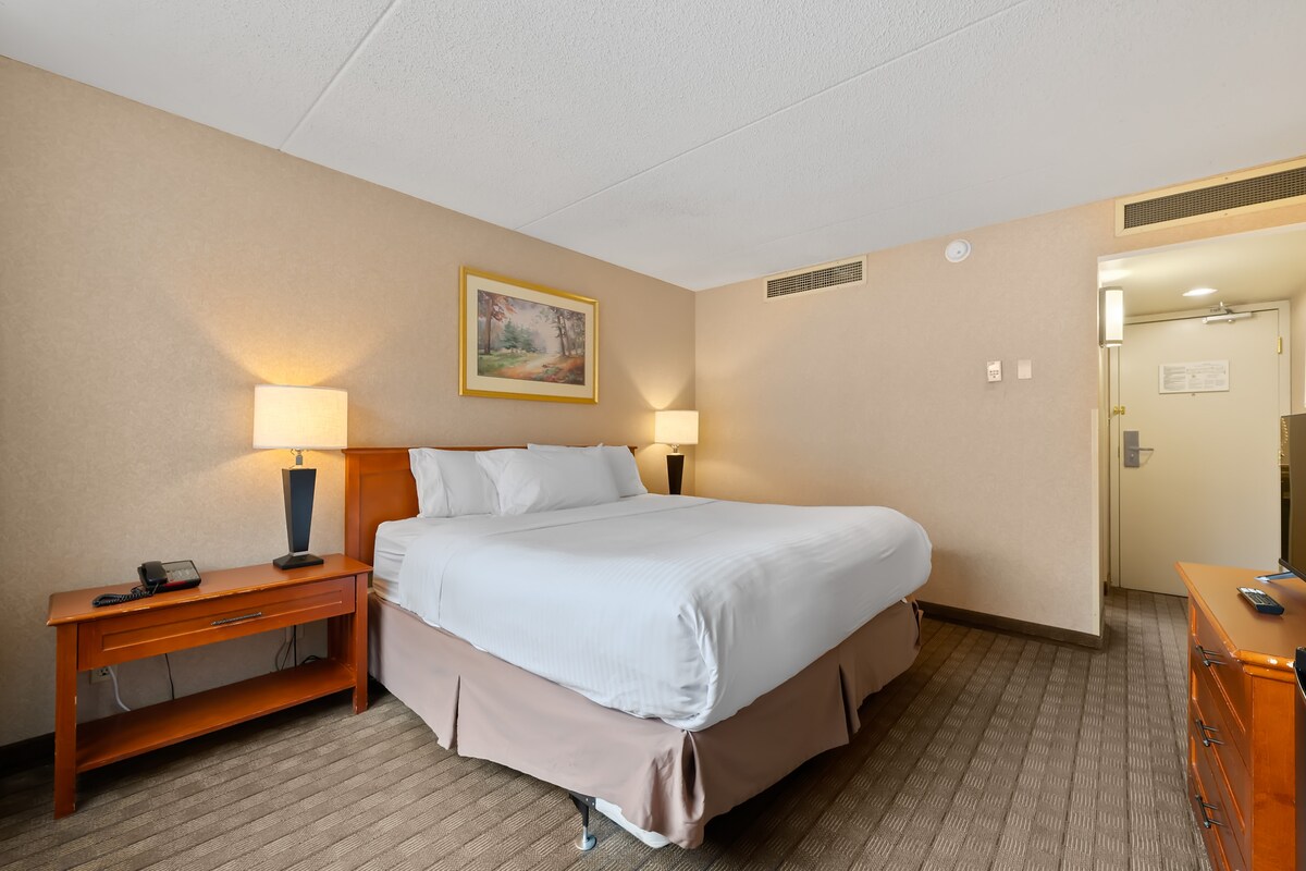 Perfect for families or small groups, this two-queen room provides space and comfort for a restful night. The hotel’s location near Fish Creek Park makes it ideal for outdoor enthusiasts. Free parking and nearby public transit make city exploration hassle-free.