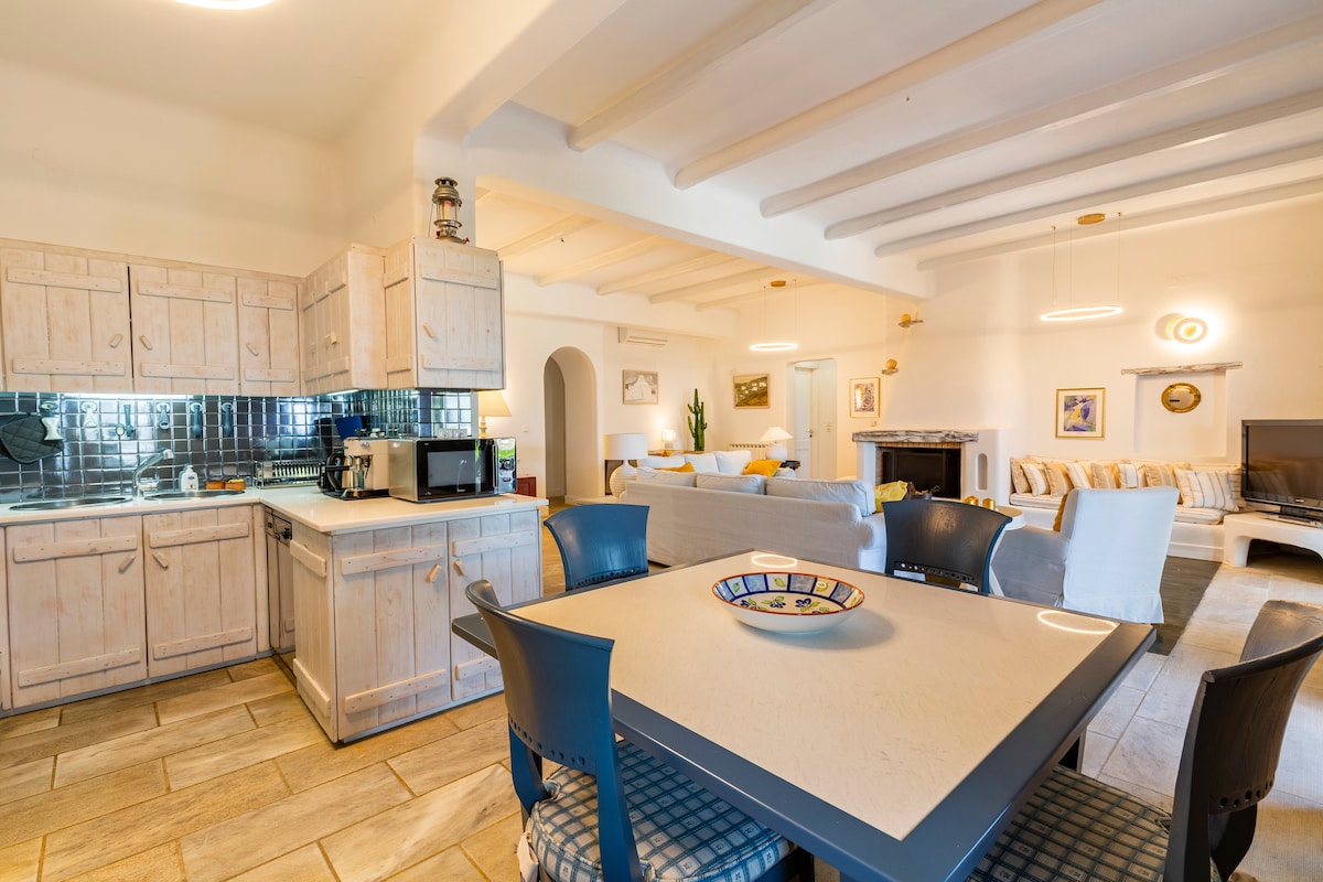 U blizini Parikije (glavnog grada) i Pounda (trajekt za Antiparos), ova vila od 180 kvadratnih metara nudi zadivljujući pogled na planine i more. Smješten u mirnom poljoprivrednom području, 3 km od Parikije, osigurava potpunu privatnost sa prostranim spoljnim prostorima i velikim bazenom. Skrivena staza vodi do pješčane plaže Parasporos. Pažljivo uređena od strane vlasnika, vila spaja principe feng šuija sa tradicionalnim elementima, prirodnim materijalima i umirujućim tonovima kako bi stvorila mirno utočište.