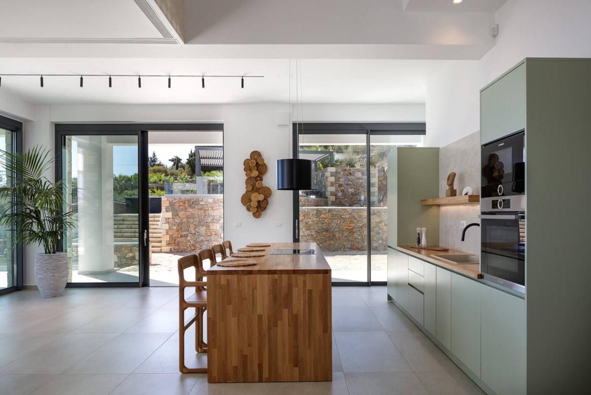 DioNysos Boutique Villa (by AmaZeus Group) Luksuzna vila dizajnirana, izgrađena i završena po najvišim standardima, samo 20(!) metara od mora. Ovaj objekat zaštićen zemljom obuhvata održivu arhitekturu i dizajn, usklađujući se sa prirodnim elementima svog okruženja kako bi se stvorila spokojna atmosfera modernog luksuza. S čistim linijama inspirisanim minimalizmom, vila prelijepo odražava sunčevu svjetlost, nudeći okruženje u kojem priroda zauzima središnju pozornicu