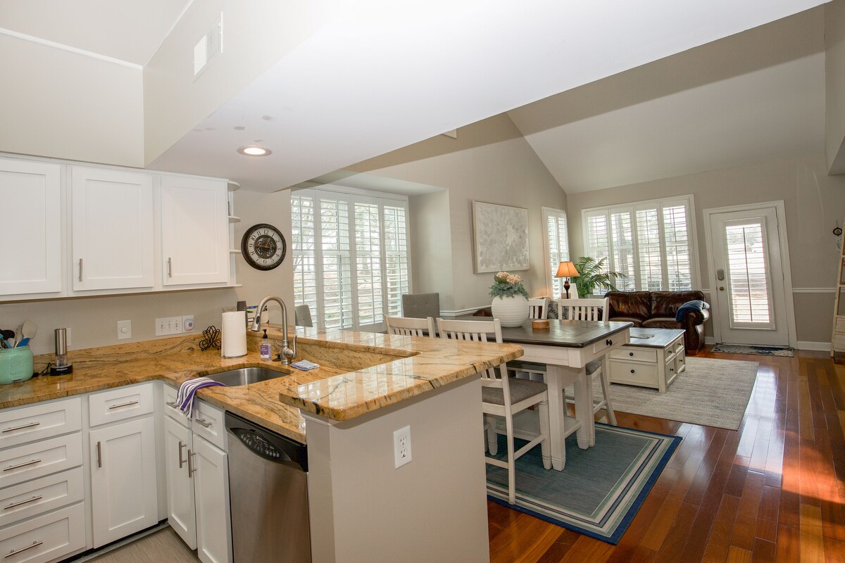 Preko puta staze Harness i lagane šetnje do glavne klupske kuće u Pinehurstu nalazi se u našoj vili na 2. rupi Elis Maplesa koji je dizajnirao Pinehurst br. 5. Naša novouređena jedinica na 2. spratu ima 3 spavaće sobe, 2 kupatila i otvoreni tlocrt. Sa sedištem za 8 i 5 kreveta, možete udobno da povedete celu porodicu. Pripremite večeru u kuhinji opremljenoj novim nerđajućim i uživajte u čaši vina iz frižidera. Ova jedinica ima dva trijema i oba su odlična za vašu jutarnju kafu.
