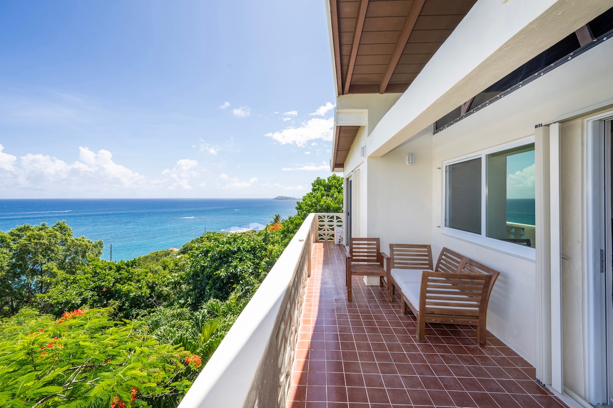 Potpuno novo! Opustite se u ovom elegantnom, mirnom utočištu s panoramskim pogledom na okean koji oduzima dah. Osjetite karipski povjetarac dok jedrilice prolaze, a sunce zalazi iznad vode. Uživajte u znamenitostima Sent Kroa, Portorika, Vodenog ostrva i bujnih vrtova. Nekoliko minuta od Havensight i Charlotte Amalie, ovaj privatni smještaj ima terasu, parking i kauč na izvlačenje. Solarna energija i baterije za neprekidnu udobnost. Dostupno je iznajmljivanje džipa. Stolice za plažu, frižider i usluga konsijerža su uključeni za besprekoran boravak!
