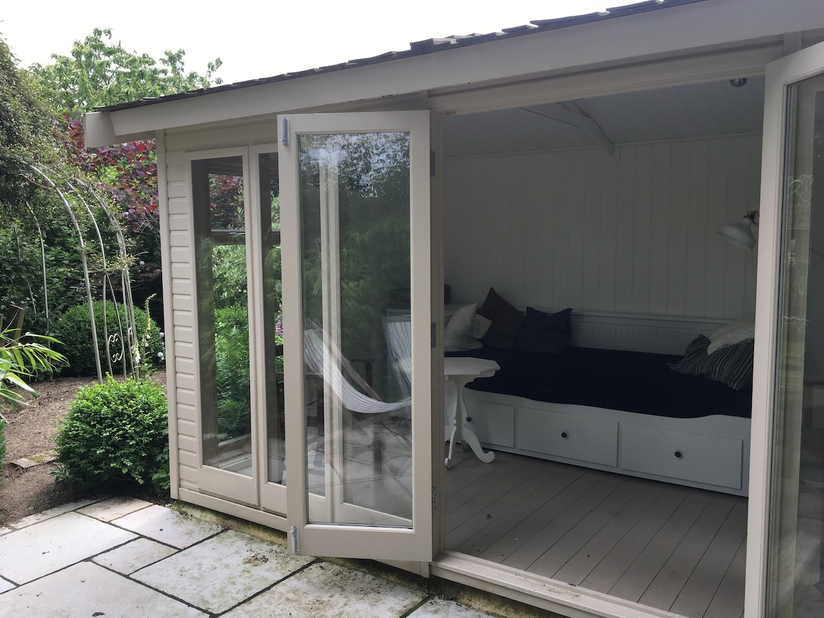 Dobro došli u naš udobni vrtni aneks sa štihom džungle! Sa samostalnom prijavom, bračnim krevetom, tuš-kabinom i WC-om, Wi-Fi mrežom i besplatnim parkingom na ulici, trebalo bi da se osećate kao kod kuće. Manje od pet minuta hoda od glavne ulice i na manje od 15 minuta hoda od železničke stanice, savršeno se nalazimo u blizini svih glavnih sadržaja i čitav niz prodavnica, restorana i pabova, bioskopa i kuglane, a istovremeno održavamo privatnost i mir i tišinu. Nadamo se da ćemo se uskoro videti!