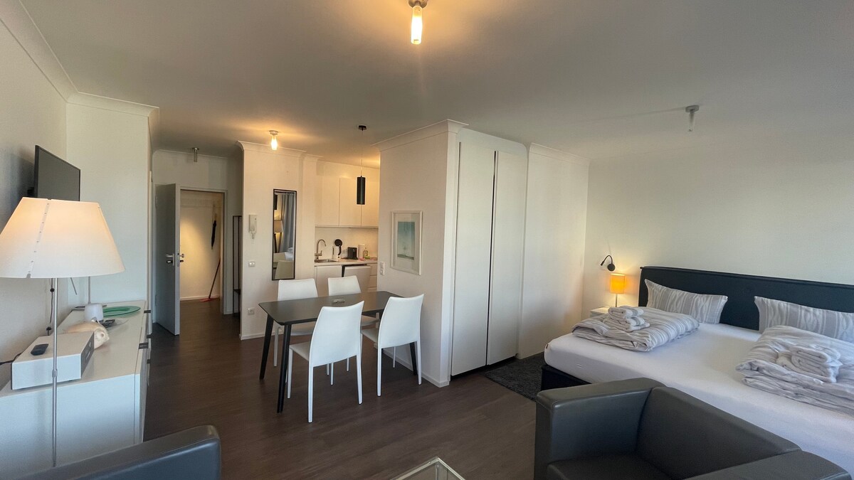 Usred starog grada, u neposrednoj blizini plaže , veoma su tihi, a ipak usred grada žive u stanu u vili Art Nouveau. Visoka udobnost kao što su TV ravnog ekrana, nova prostorija za tuširanje i nova čajna kuhinja dio su naše usluge, kao i obilni peškiri, posteljina i besplatan Wi-Fi. Po lepom vremenu možete uživati u finom doručku u dvorištu ili/ i ćaskati sa ostalim gostima. Radujem se vašem pozivu. 0171-7650553 Vaša Jovana Ohlsen :-)