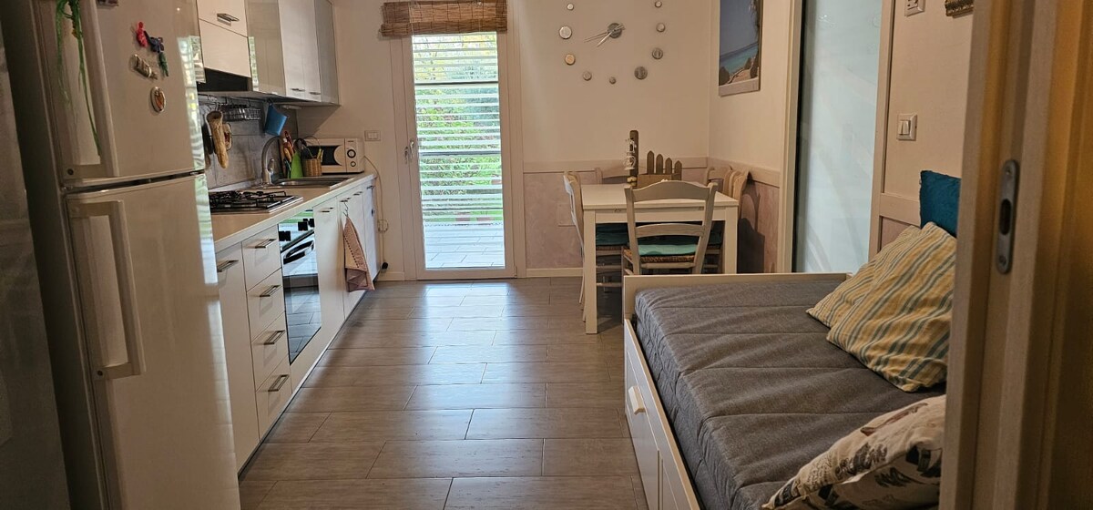 Pozdrav svima! Mi smo vesela porodica, ljubitelj putovanja. Obezbjeđujemo studio od oko 20 kvadratnih metara koji se nalazi u prizemlju renoviranog rustikalnog, sa nezavisnim ulazom, koji se sastoji od opremljene kuhinje (frižider, mašina za pranje sudova, šporet, rerna, mikrotalasna pećnica, posuđe,...), stola sa 6 stolica, kauča na razvlačenje koji može da postane dvostruki, kupatila sa tušem i mašinom za pranje veša. Velika bašta sa velikim tremom. Centralna lokacija u selu, 8 km od Pordenonea.