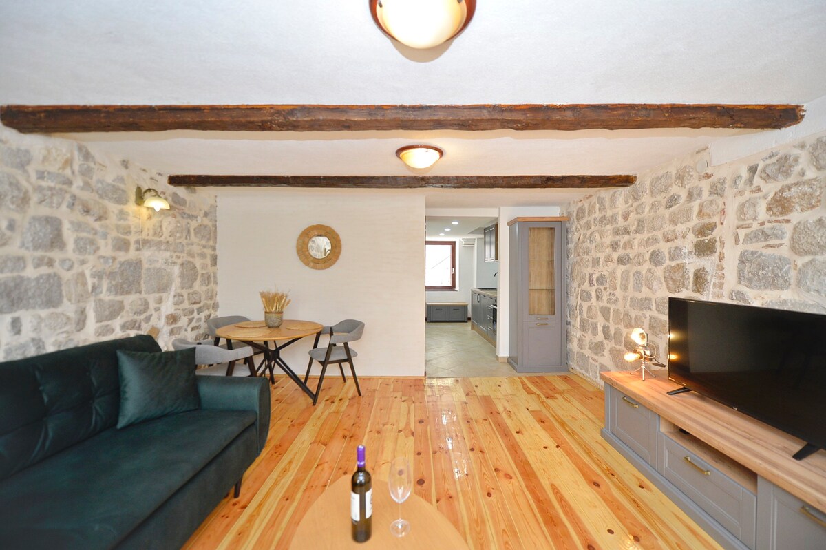 Svijetli i udobni, elegantni jednosobni stan sa potpuno opremljenom čajnom kuhinjom. Vrlo jak Wi-Fi( 74,35Mbps) Savršeno za digitalne nomade. Nalazi se na prvom spratu potpuno renovirane kamene kuće, nedaleko od gradskih zidina Starog grada Kotora. NE obezbjeđujemo parking. Klima-uređaj, opremljena kuhinja, mašina za pranje veša, mašina za sudove, krevetac za bebe. Vrlo centralno, i samo nekoliko sekundi udaljeno od Starog grada i nekoliko minuta od tržnog centra i plaže.