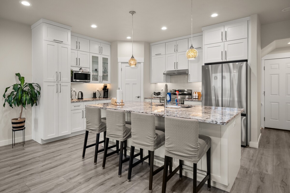 Ova novoizgrađena kuća sa 5 spavaćih soba i 4 kupatila nudi savršen spoj moderne udobnosti i lokalnog šarma – idealna za putujuće profesionalce, porodice ili grupe koje traže i praktičnost i stil. Pet prostranih spavaćih soba sa udobnom posteljinom i dovoljno prostora za odlaganje Četiri kupatila sa podnim grejanjem Dnevni boravak otvorenog tipa sa obiljem prirodnog svjetla Potpuno opremljena kuhinja sa aparatima od nerđajućeg čelika i radnim površinama od granita Privatno dvorište i unutrašnje dvorište savršeni za opuštanje u večernjim satima