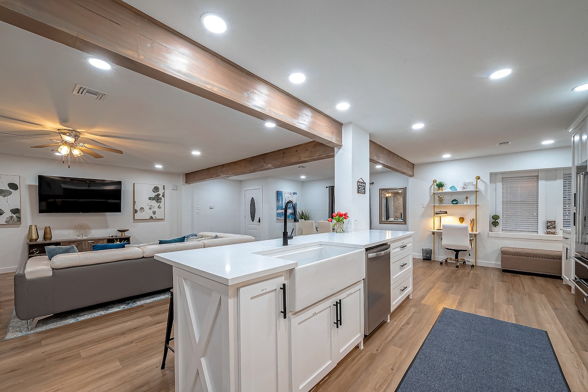 Doživite razliku u našem prilagođenom domu koji smo dizajnirali i izgradili za naše goste! 1800sf, 3 kreveta, 2 kupatila, za 14 osoba! U srcu Kineske četvrti, neposredan pristup Vestpark Tollu i Beltveju 8. Prikladno za bebe/djecu/kućne ljubimce! Sva osnovna oprema/sadržaji su uključeni: potpuno opremljena kuhinja, 2 kralja, televizori u svim sobama, vrhunska posteljina/posteljina, besplatne grickalice/pića, sve toaletne potrepštine, namenski radni prostor, mašina za pranje veša, USB priključci, ultra brzi Wi-Fi i Netflix, Hulu, Disney+, ESPN+!