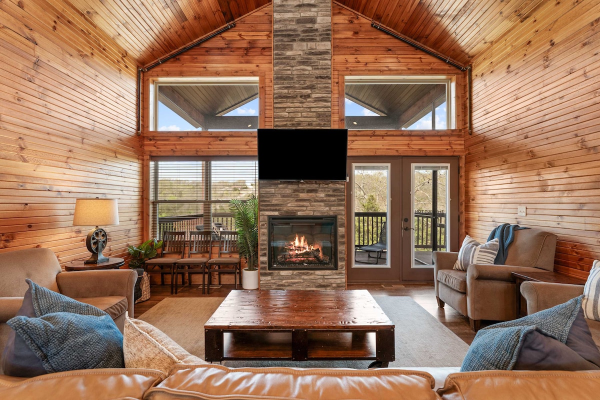 Pobjegnite od gužve i vreve i povucite se u našu udobnu kuću na drvetu smještenu u divljini Ozark. Naša jedinstvena brvnara ima 4 sprata, 2 električna kamina, 1 peć na drva, spiralno stepenište, unutrašnji vodopad i skriveni kutak za čitanje/slikanje. Uživajte na otvorenom dok se opuštate u hidromasažnoj kadi i uživate u spokojnom pogledu. U roku od 30 minuta od restorana, barova, zabave, jezera Tebl Rok, zabavnih parkova i još mnogo toga!