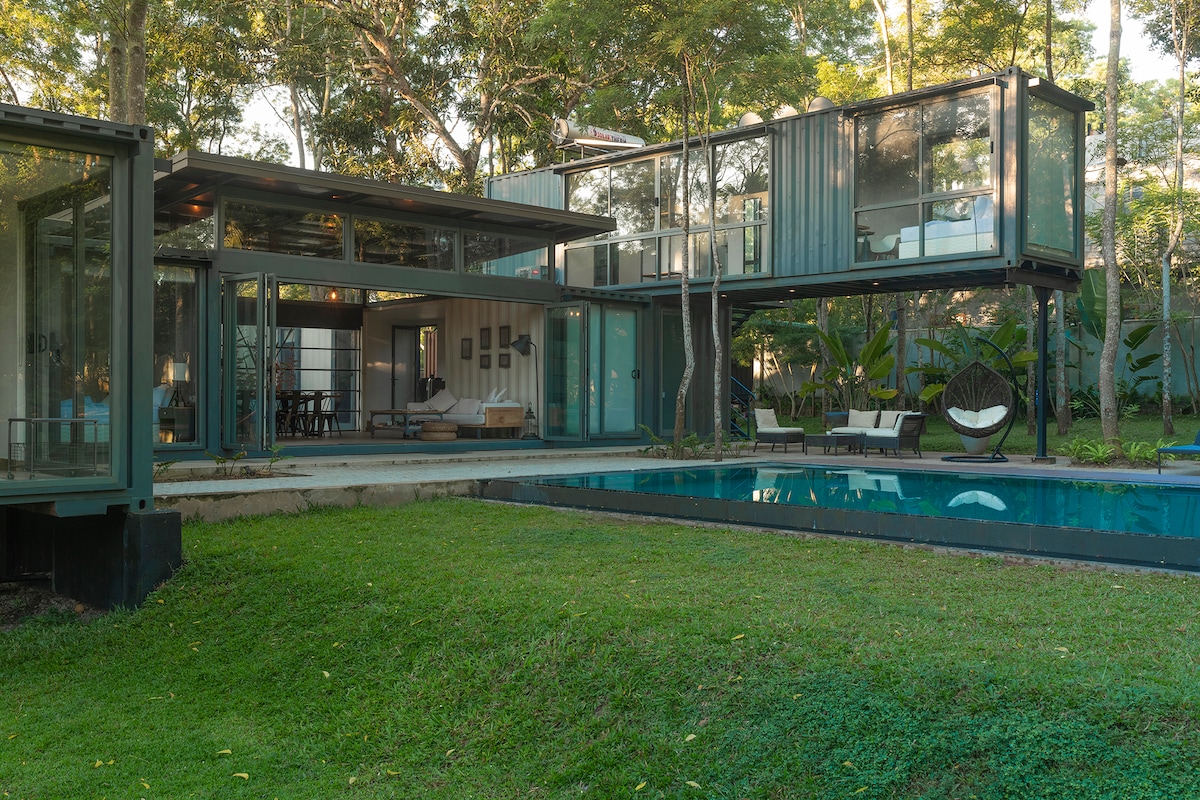 Ova moderna vila koja se nalazi usred šumavaka sa visokim satenskim drvećem, a sastoji se od pet preuređenih kontejnera za isporuku. Sobe su dobro uređene, prostrane i dobro izolovane od vrućine. Sve sobe su opremljene kupatilima i sadržajima u hotelu sa 5 zvezdica. Smješten samo 3,5 km od Tangalle Towna, objekat se nalazi na pristupnom putu za plažu, samo 1 KM UDALJEN od plaže Marakolliya i projekta kornjača sa divljim životinjama Kapuhenwala gde se može organizovati posmatranje kornjača.