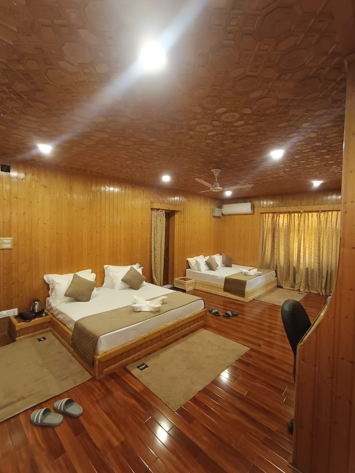 Stan sa 2 spavaće sobe i dnevnim boravkom koji nudi Maskan, izgrađen od autentične kašmirske vrbe i namda tepiha – istih zanata iz starih radionica Doline, sada utkanih u vaše zidove i podove. Dobri kreveti, topla voda, brz Wi-Fi. Daje osjećaj doma, samo doma sa mnogo više karaktera. Savršeno za porodice i duže boravke. ★ LOKACIJA ★ ✔ 10 minuta od Lal Čouka i aerodroma ✔ 15–20 min do jezera Dal ✔ Jednodnevni izleti u Gulmarg, Pahalgam i Sonamarg ★ U BLIZINI ★ ✔ 5 minuta hoda do supermarketa Pick & Choose ✔ 2 minuta hoda do kompleksa Nirman