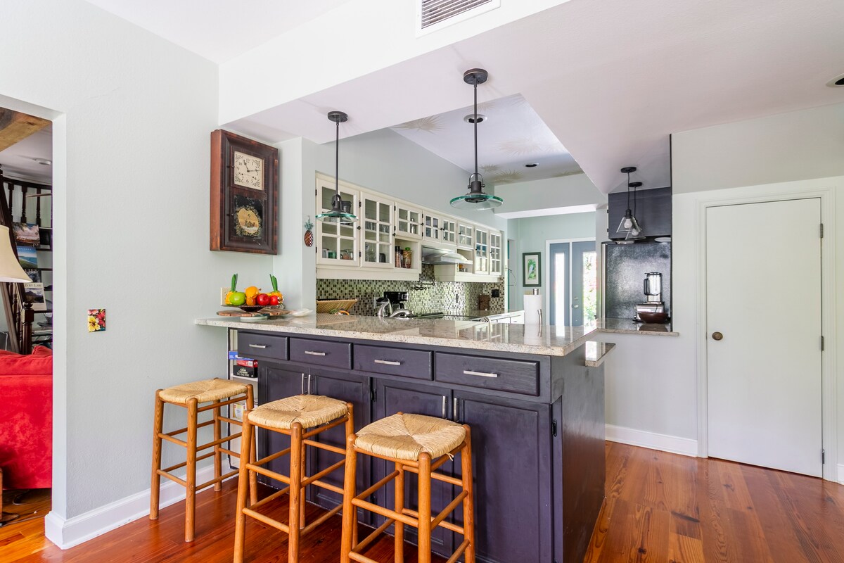Uživajte u svakom TRENUTKU ODMORA u ovoj prelepoj OAZI pored MORA. Smešten u bujnom dvorištu i okružen autohtonim floridskim biljkama i divljim životinjama, ovaj JEDINSTVENI SMEŠTAJ ima sve što tražite. Madrac King Canopy Temper Pedic Cloud će vas natjerati da spavate kao beba. Tu su i kaučevi na razvlačenje sa dušecima od memorijske pene za spavanje 6 VRLO udobnih! Kupatilo nalik spa centru se može pohvaliti mermernim/kamenim tušem, a kuhinja je takođe dobro opremljena. JEDINSTVENA!