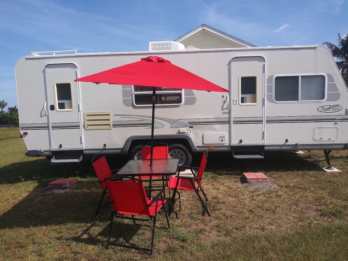Twenty six foot Travel Trailer, completely equipped , sleeps four people, situated on an inland waterway, ideal for fishing or boating into the Port Saint Lucie River, which leads into the Atlantic Ocean. plenty of free parking less than fifty foot from property. Nice secluded circle with only four houses.
