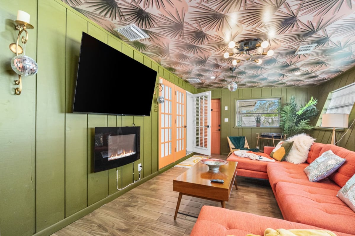 ✨ Dobro došli u svoj elegantni odmor na Floridi – zagrijani bazen, ugođaj odmarališta i beskrajna zabava✨ Utočište Sent Pit, dizajnirano s ljubavlju, stvoreno za udobnost i povezivanje. Uživajte u privatnom bazenu, udobnom ognjištu, bioskopu na otvorenom, stolu za bilijar i karaoke mašini za beskrajnu zabavu. Pijte tropska pića iz aparata za margarite i opustite se pod luksuznim tuševima sa efektom kiše. Uz elegantan dekor, potpuno opremljenu kuhinju i bar za kafu/čaj, svaki detalj je pažljivo osmišljen kako biste se osjećali kao kod kuće.