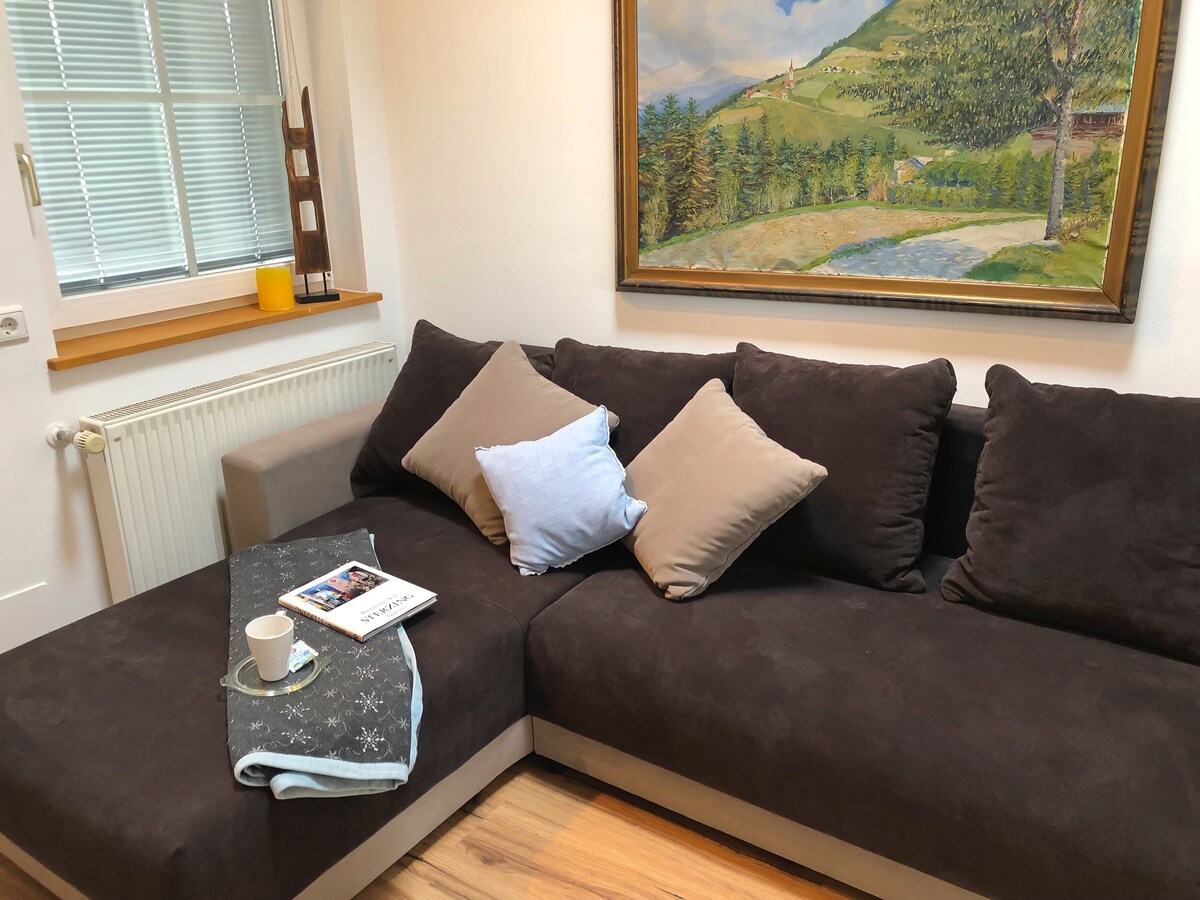 Nudimo vam opuštanje na periferiji Sterzinga u lijepom stanu s balkonom i pogledom na planine. To je polazna tačka za mnoge prelijepe planinske ture, bez obzira u kom smjeru i pješke ili planinskim biciklom! Dolomiti su blizu! Stan je naš drugi dom, potpuno opremljen kuhinjom i svim dodacima. Ulaz u stan je sa zadnje strane zgrade! To vam omogućava da vozite direktno do ulaza, iako se stan nalazi na trećem spratu!