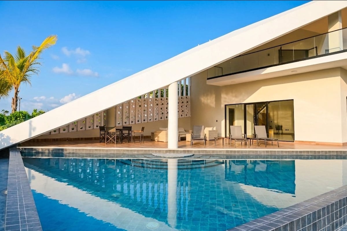 Pobjegnite u ovu vrhunsku vilu u Doral Vilidžu, udaljenu 1 minut od centra Punta Kane. Ima 3 spavaće sobe, 3 kupatila, moderan dizajn i privatnu terasu sa đakuzijem. Uživajte u stanici dobrodošlice s dominikanskom kafom, mlijekom i hladnom vodom. Uključuje špansko maslinovo ulje, čajeve, čokolade i dupli jastuk po gostu. Vrhunski sadržaji: gel Dr. Teal i šampon i regenerator L'Oréal. Idealna lokacija u blizini restorana, supermarketa i bioskopa.